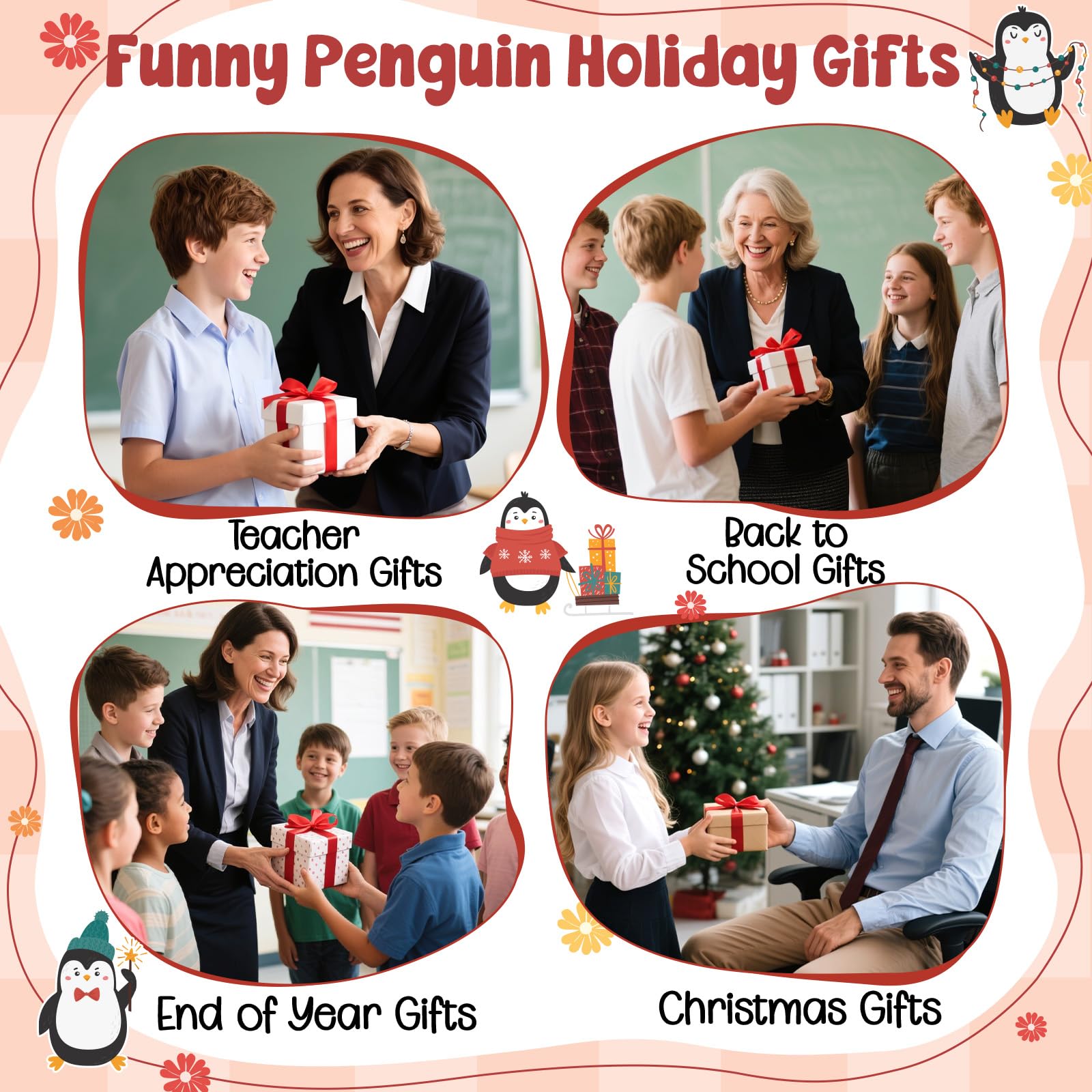 Emotional Thank You Teacher Gifts: Our mini emotional penguin reminds teachers how amazing they are! With the cheerful message “You’re a Flippin Awesome Teacher”, this little companion brightens their desk, classroom, or home office, spreading positive energy all day long