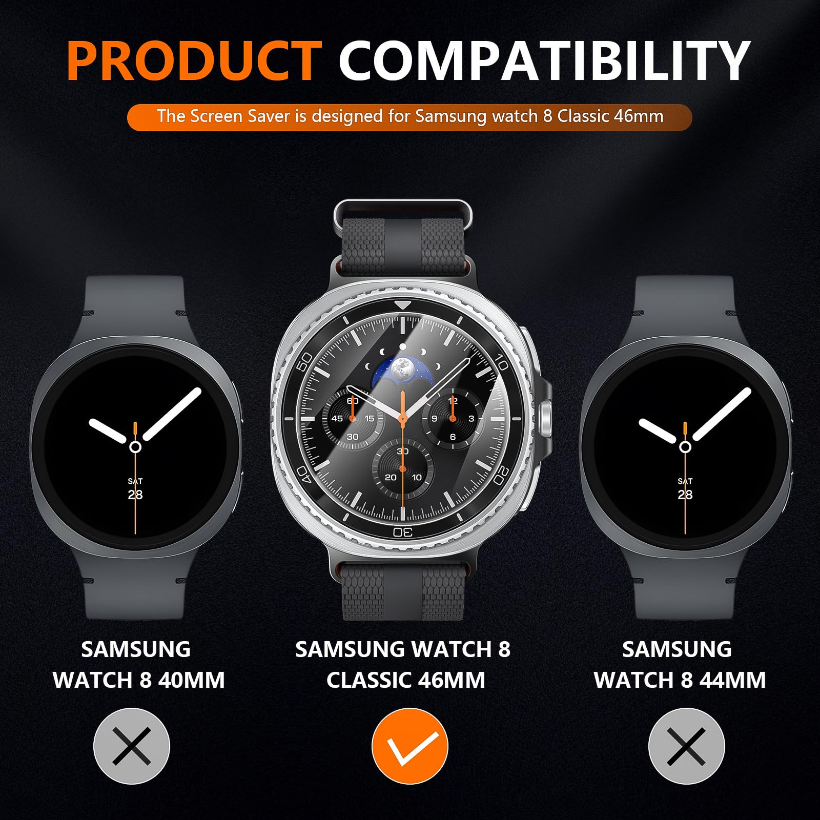 Compatible Model:Only fit for Samsung Galaxy Watch 8 Classic 46mm. Privacy+High Definition Combination Tempered glass screen protector,offer full protection sercure.Let you have a new experience.Please confirm the model size before buying.
