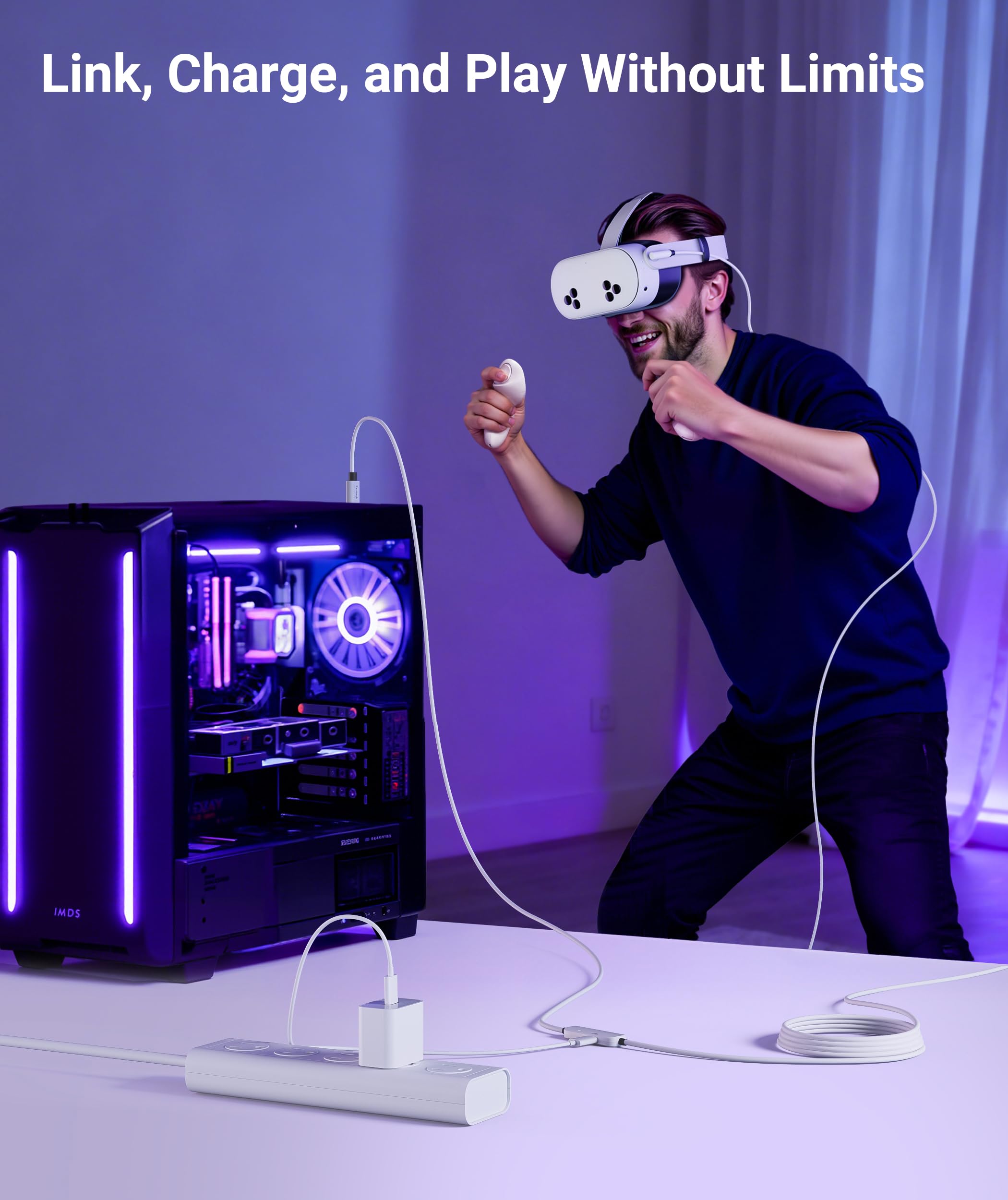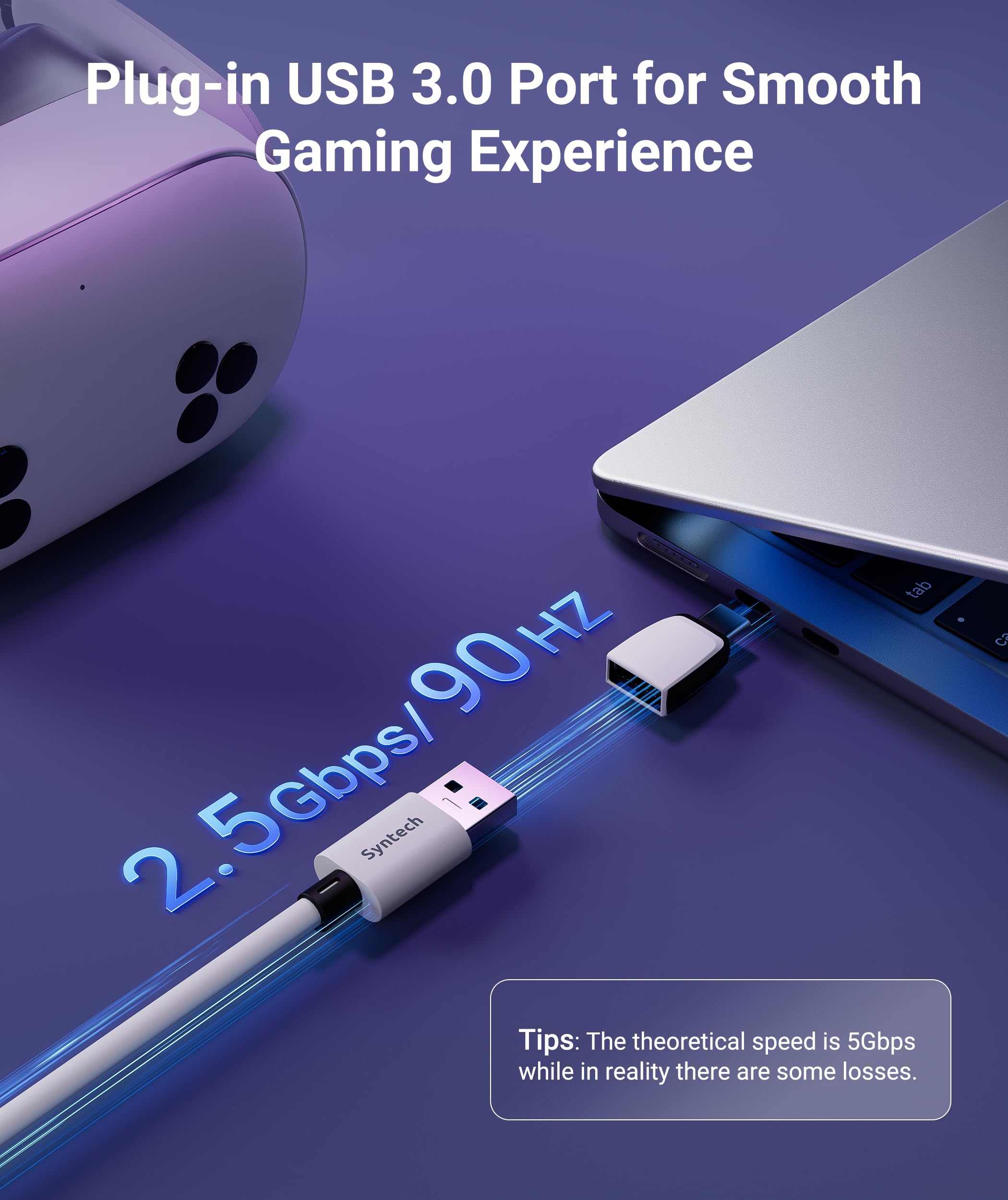 Compatible with Meta Quest 3S/3/2 Accessories: The Syntech 2026 link cable is optimized for seamless compatibility with the latest VR headsets, ensuring a stable USB 3.0 PC connection while fast charging your Quest 3S/3/2. Note: This VR link cable is not designed for charging phones, computers, tablets, or other devices.