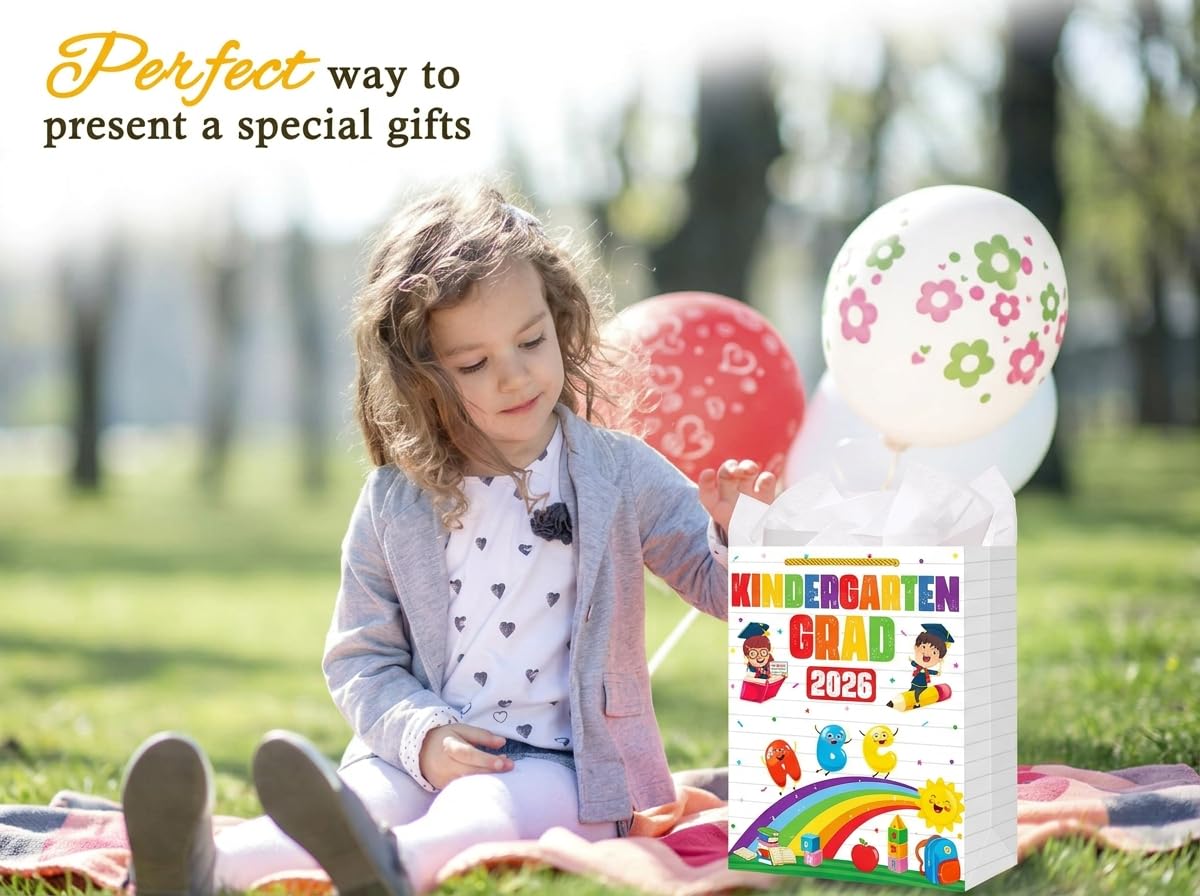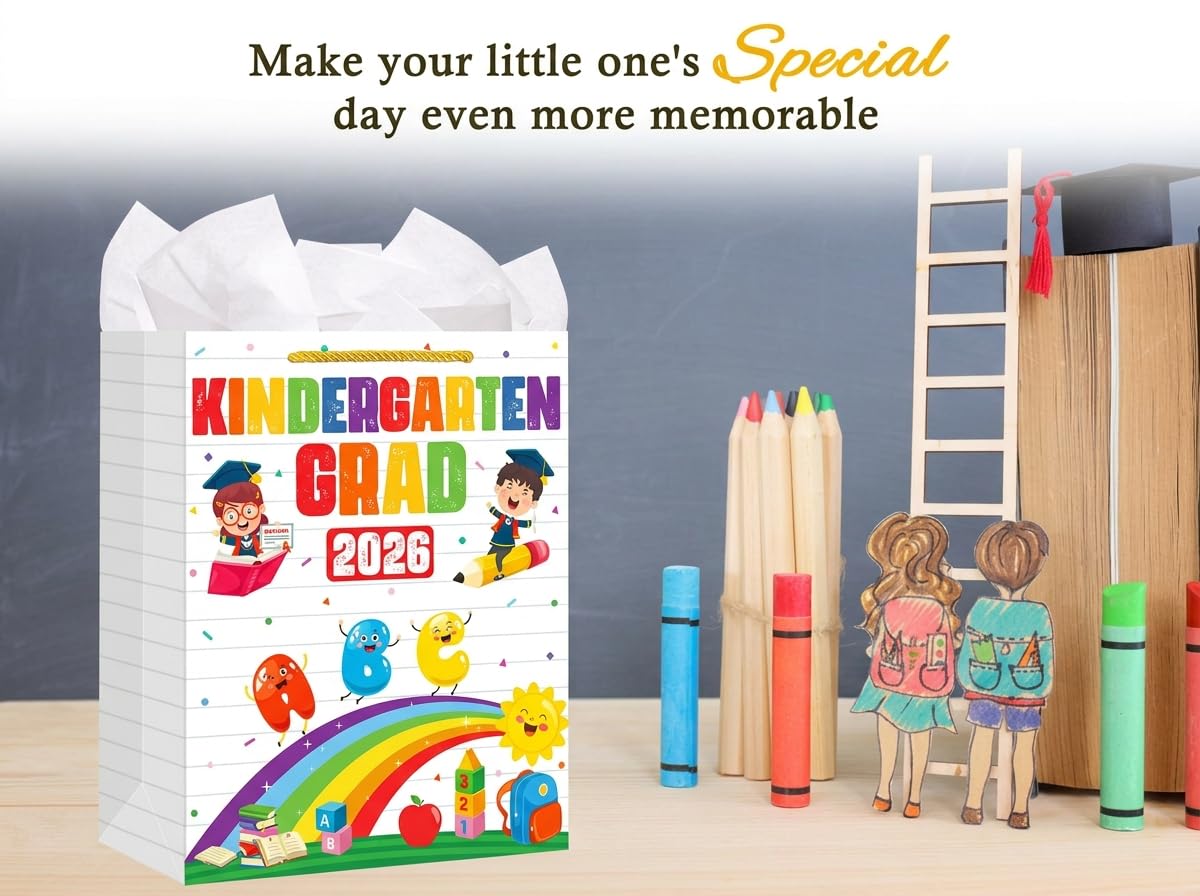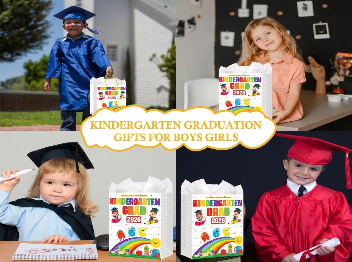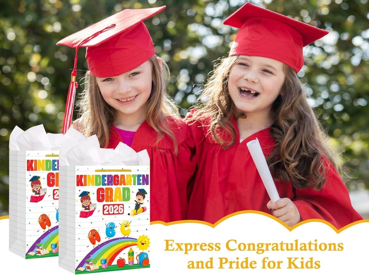 【Perfect 2026 Kindergarten Graduation Gift Bags for Presents】: Whether you're a proud parent, grandparent, teachers or friend,this kindergarten gifts wrap gags in assorted designs are perfect for holding candles, pencils, standard-sized books, clothing, hat, diploma,candy or chocolates as small presents for kids.Suitable for celebrating kindergarten graduation, pre k preschool graduation party decorations. Make their graduation day even more special.