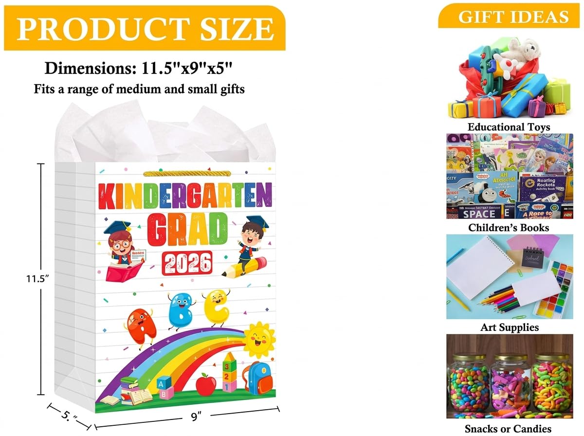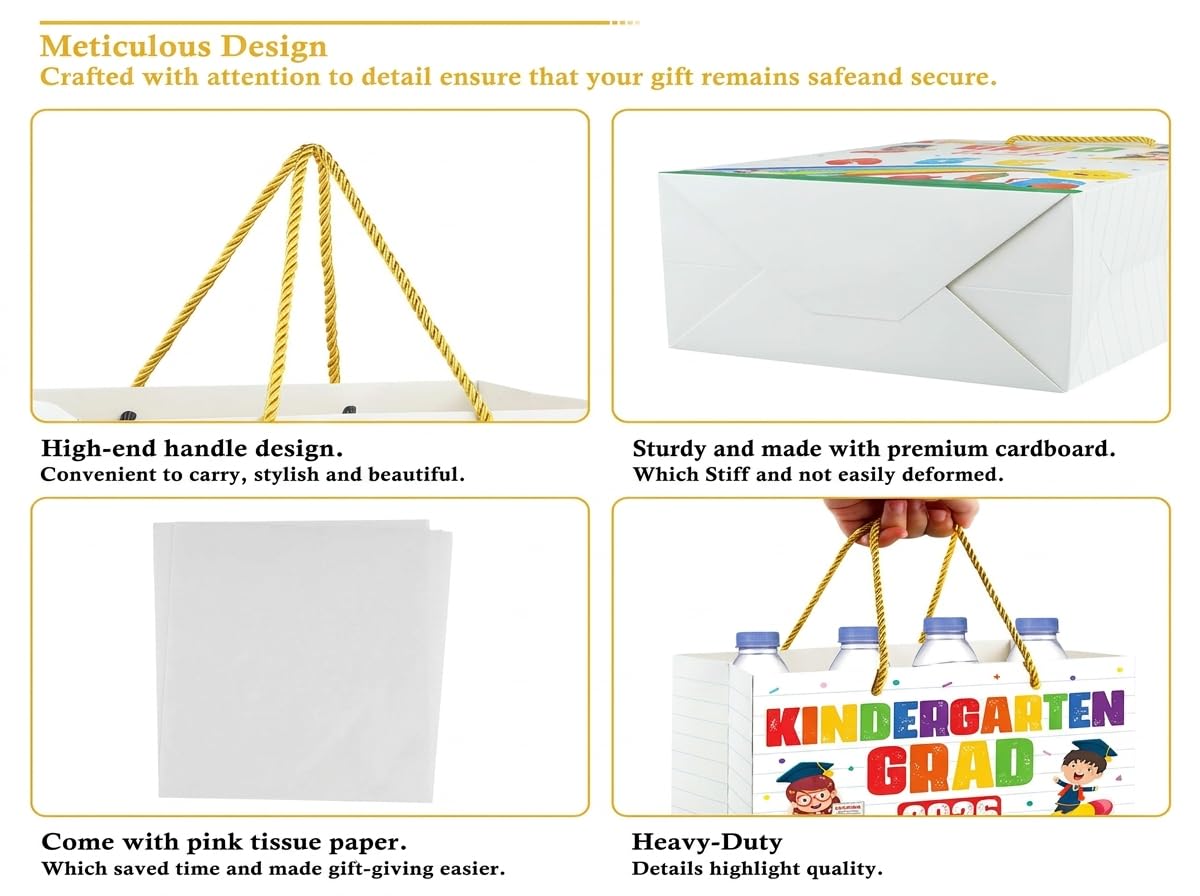 【Kindergarten Graduation Gifts Bag 2026】: Congratulations kindergarten preschool graduation gifts bags with handle come with a piece of white tissue paper which will make wrapping child's Kindergarten graduation gifts quick and easy.Perfect 2026 kindergarten graduation gifts for bags kids daughter son which is a durable and elegant way to showcase your little one's big achievement.