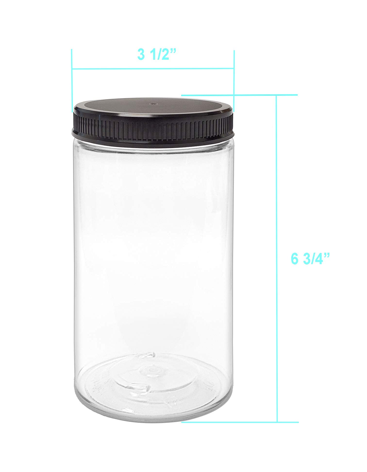 VERSATILE CONTAINER – Showcase and safeguard everything from personal care products and cosmetics to dry foods and snacks in the shatter-resistant and thick-walled PET plastic construction of this 32 oz container. Size: 6 ¾” tall and 3 ½” wide. 3 ¼” mouth opening. NOT DISHWASHER SAFE