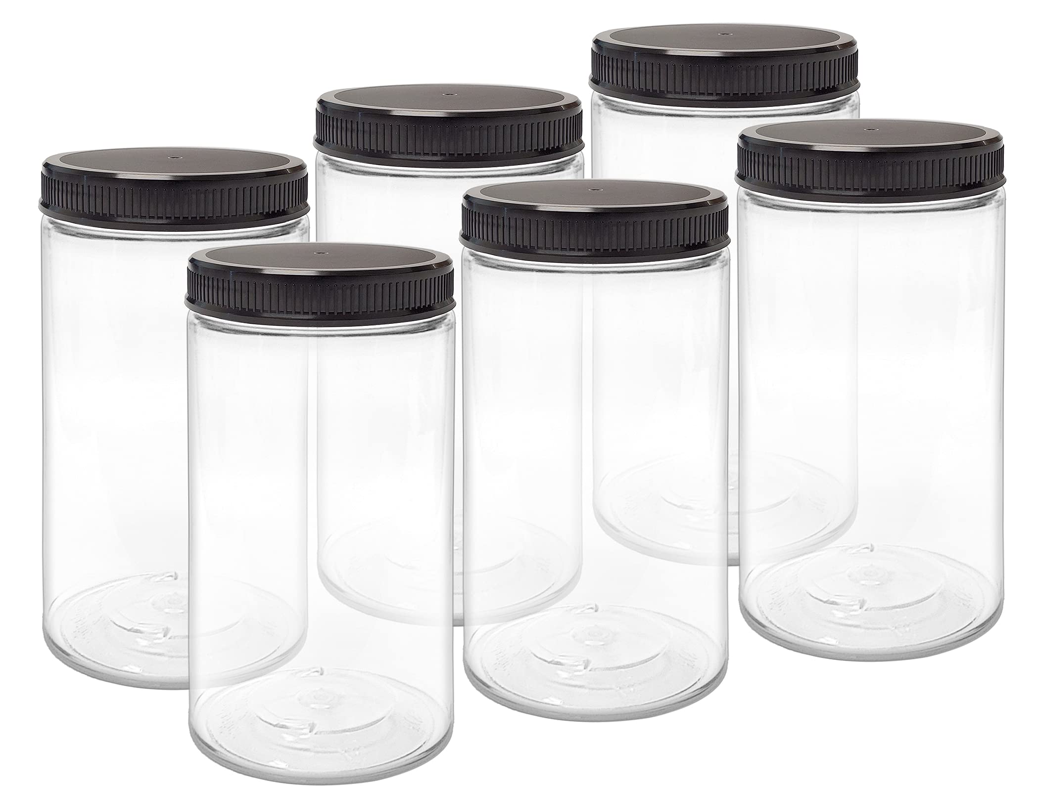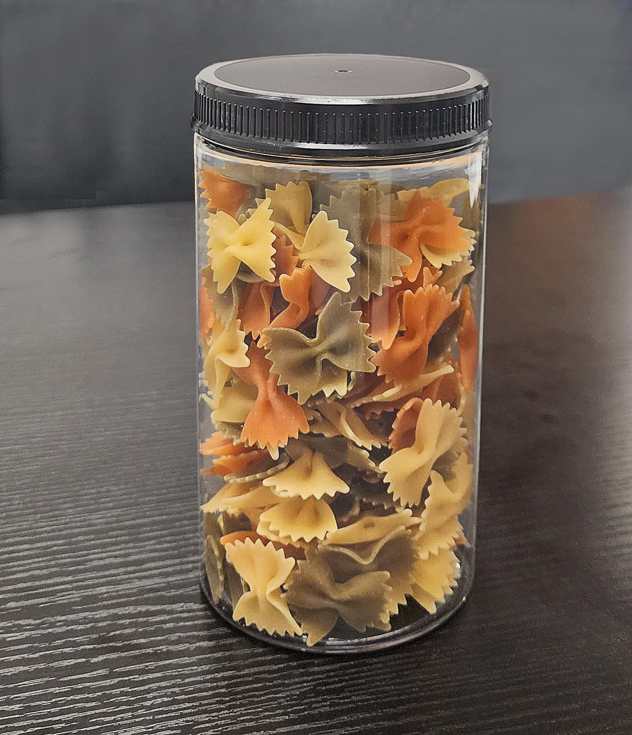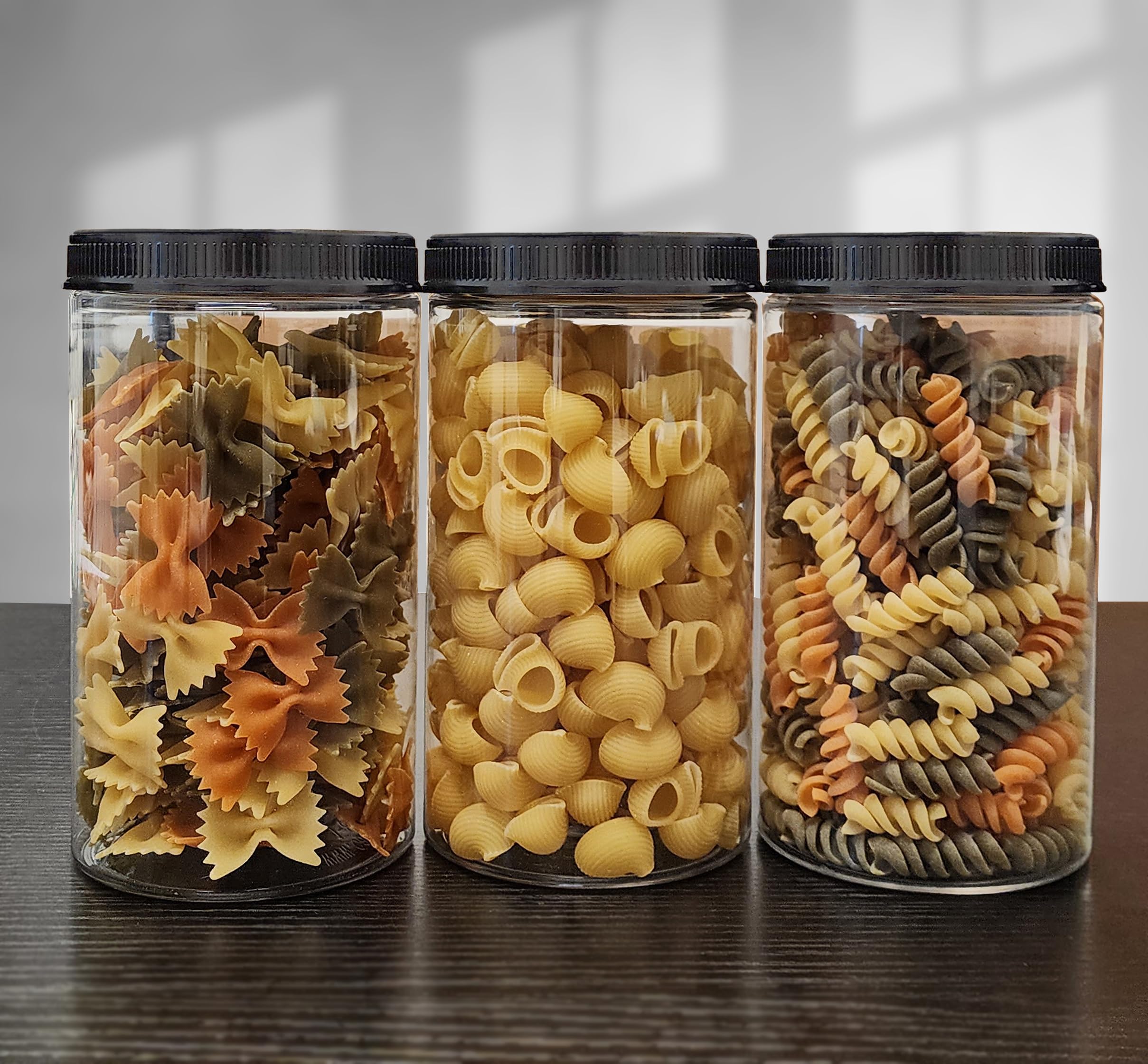 FOOD SAFE PET PLASTIC, BEST FOR KITCHEN - These clear PET plastic Jars canisters gives full view of the product inside while the round body and base make this container space efficient for shipping and shelving