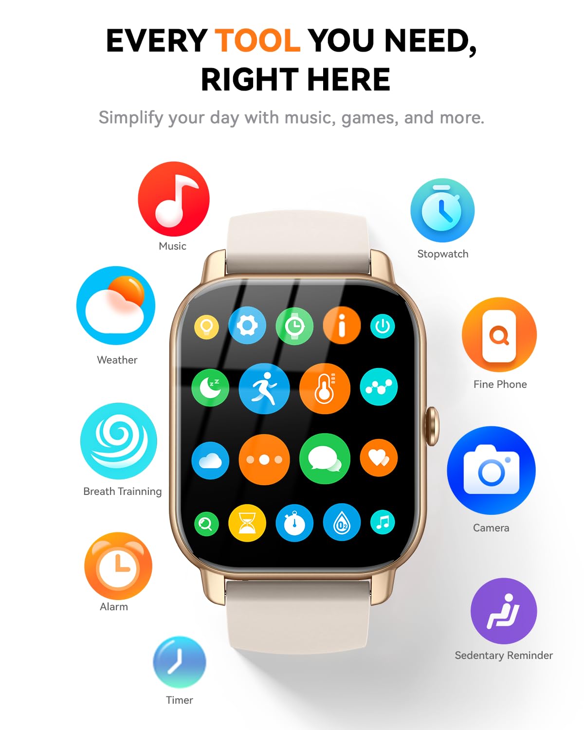 Multifunctional & Widely Compatible:**Effortlessly manage camera/music/weather/stopwatch functions—all from your wrist. Compatible with iPhone (iOS 9.0+) and Android (5.0+), this smartwatch ensures seamless connectivity for daily convenience. More than a fitness tracker, it's a stylish all-in-one wearable for smarter, healthier living