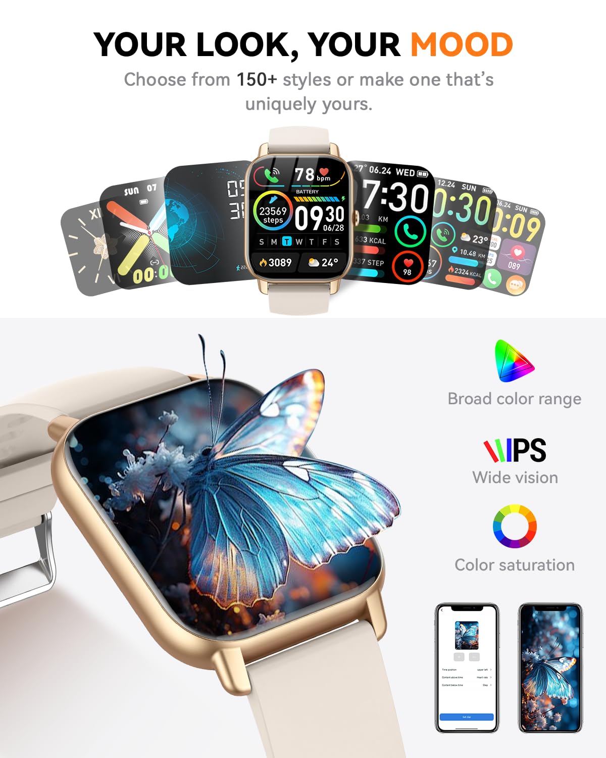 1.85" HD Touch Display & Personalized Watch Faces:** This modern smart watch for men women features a stunning, high-definition touchscreen that allows for smooth interaction and striking visuals. Customize it using stylish watch faces from GloryFit or upload a treasured photo—family portraits, selfies, or breathtaking scenery—as your one-of-a-kind wallpaper. Showcase your style with minimal effort