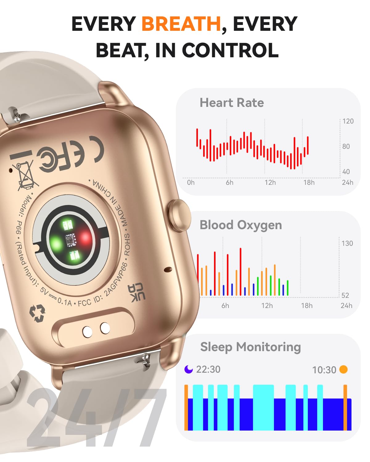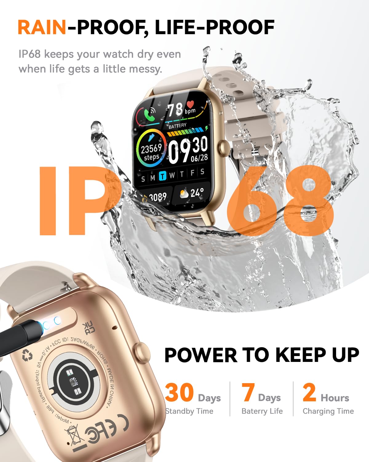 IP68 Water Resistance and Reliable Battery:** This smart watch is built for those who lead active lives, proudly showcasing an IP68 waterproof rating that protects against splashes, sweat, and brief submersion—making it ideal for workouts, outdoor pursuits, or drizzly days. Its robust 300mAh battery ensures 5-7 days of active performance and up to 30 days on standby, lessening charging interruptions. It is well-suited for all-day wear, from gym sessions to outdoor activities and daily travels.