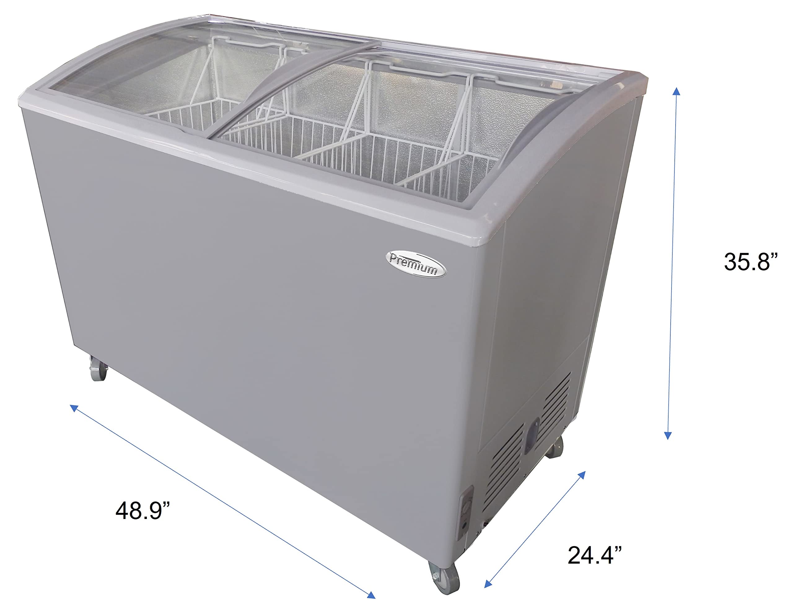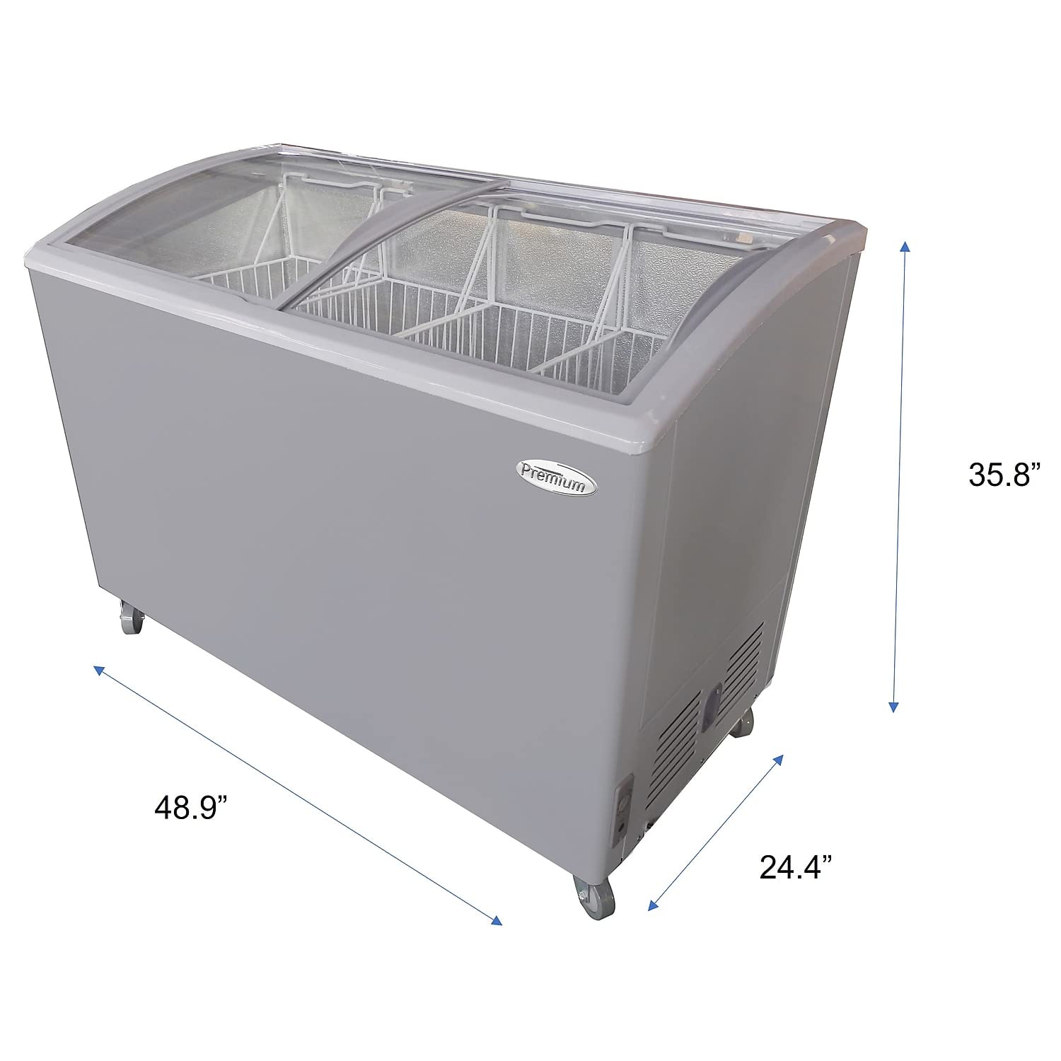 The Premium 9.5 cu. ft. curved glass top chest freezer is perfect whether in your home or business. Use it in your home to easily see and organize your frozen food. Use it in your business to attractively display your merchandise. The convenient sliding glass doors with arc shaped handles make loading and unloading your freezer efficient, smooth and easy. The see-thru glass top allows you to quickly see what's inside so you don't have to leave the freezer open for long periods which helps to keep the inside temperature consistent. No more trying to hold open a lift-top lid with one hand while searching for that pound of hamburger that fell all the way to the bottom with the other hand. The 4 wire removable baskets help to keep your frozen food items organized and within easy reach. Store smaller items in the baskets and larger items underneath. Or go ahead and customize your freezer by removing all or some of the baskets if you prefer to store large items such as whole turkeys or roasts. This freezer is also equipped with a lock and key so you can be confident that nothing is removed without your permission.
