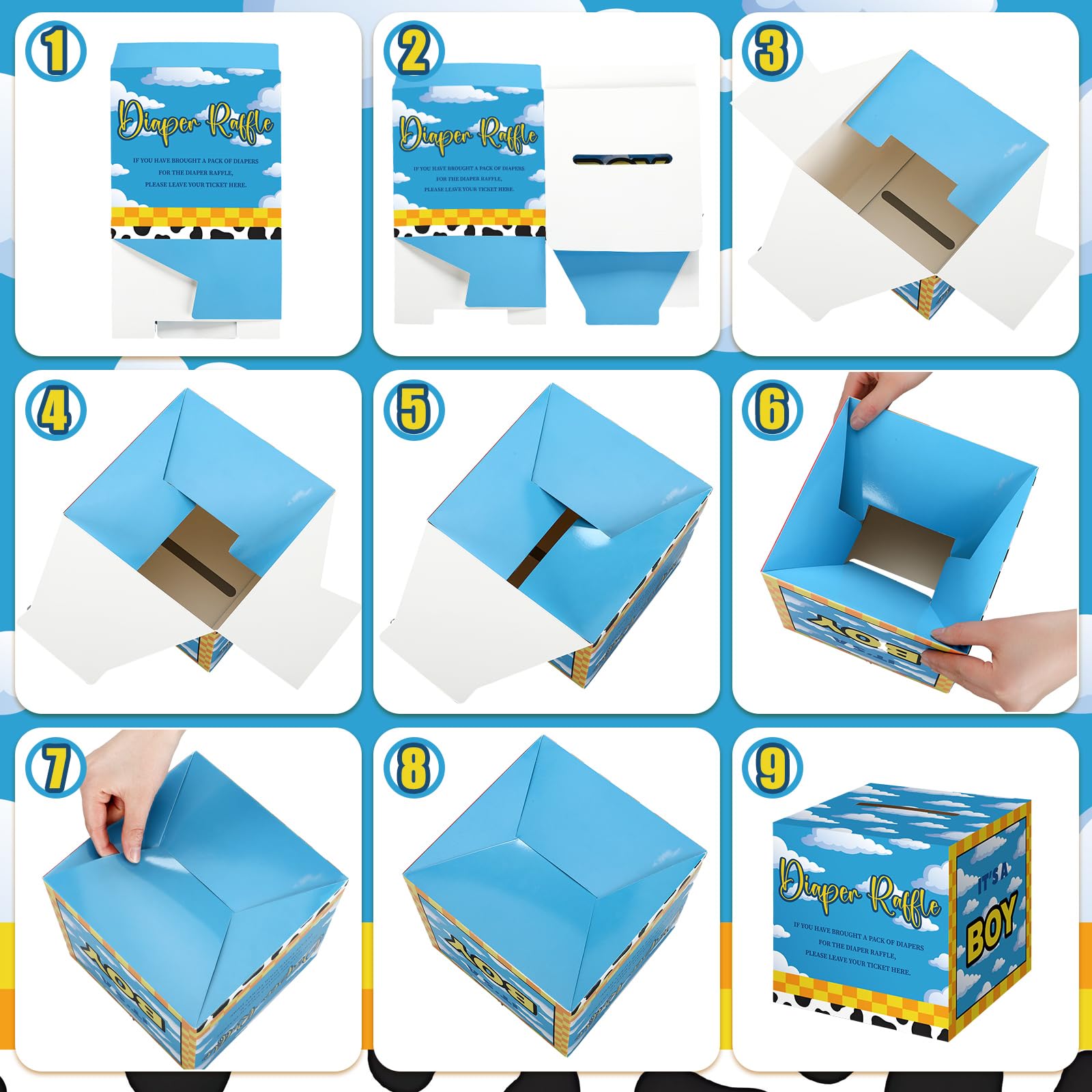 Easy to Install: you can easily install the raffle ticket box along the creases, or fold it in the correct way as shown in the picture, simple and convenient; After that, you can put the diaper raffle cards into the box through the slot on the top
