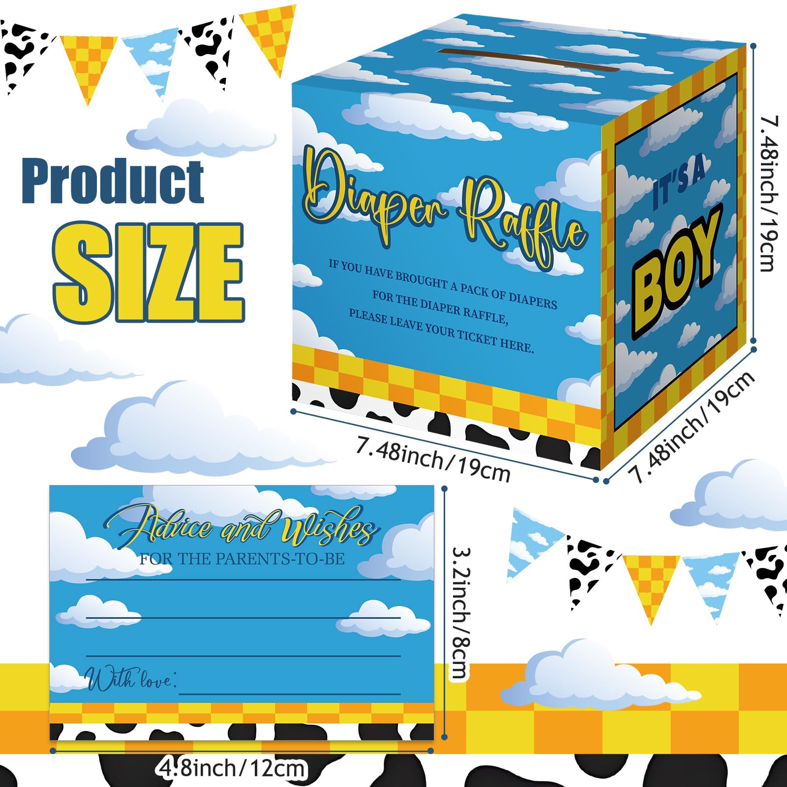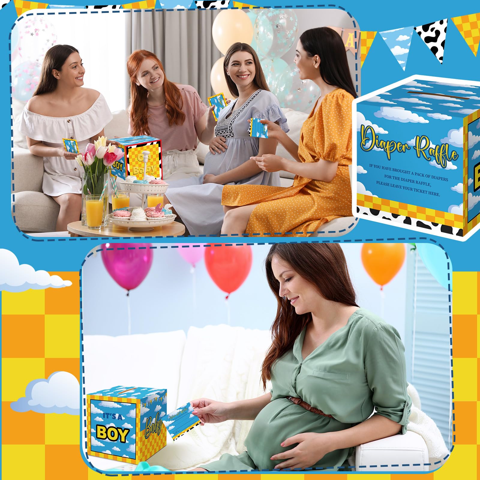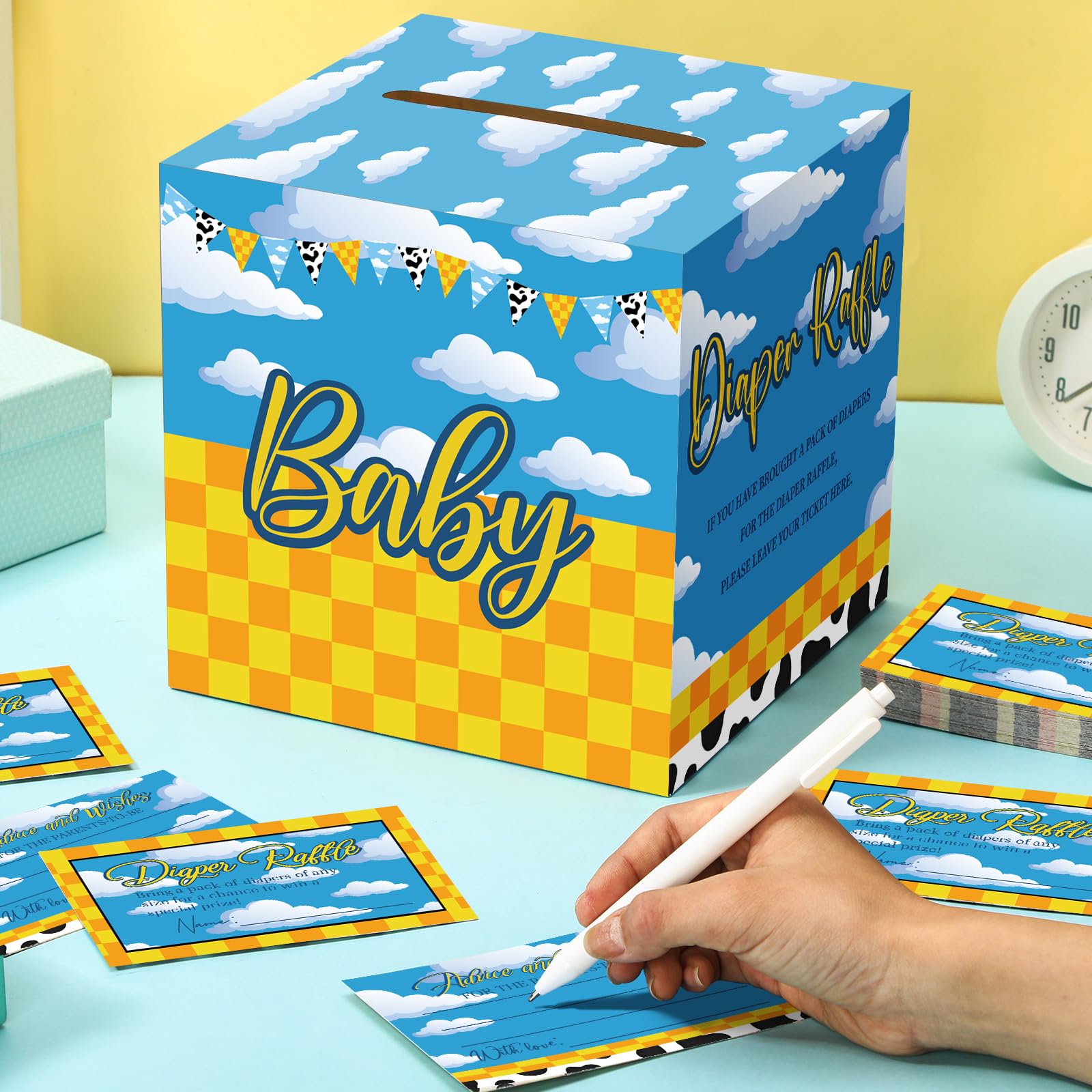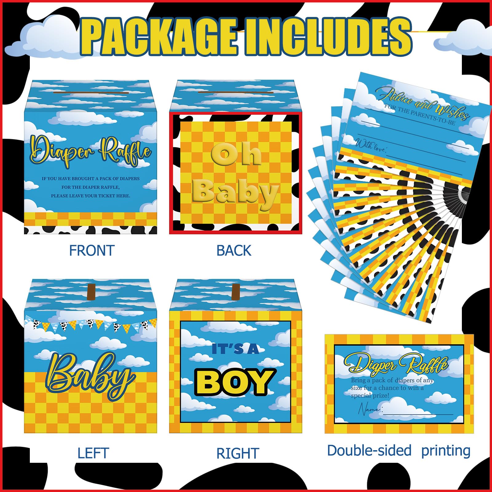 Nice Combination: there is 1 piece of diaper raffle box and 50 pieces of diaper raffle tickets for baby shower in each package, which can be put into use in combination to provide you with both decorative and practical functions