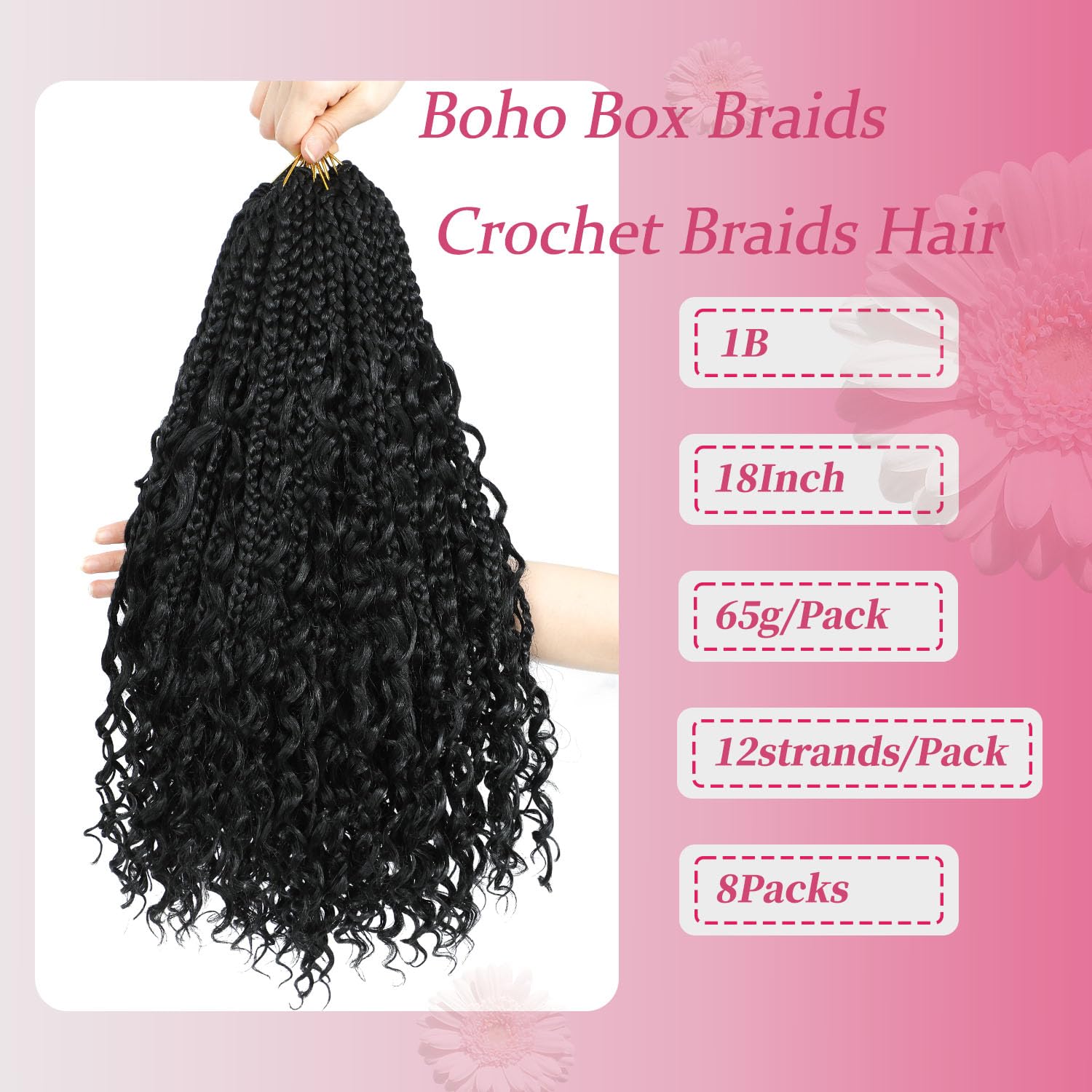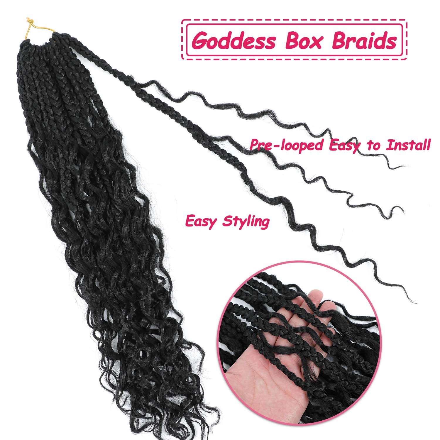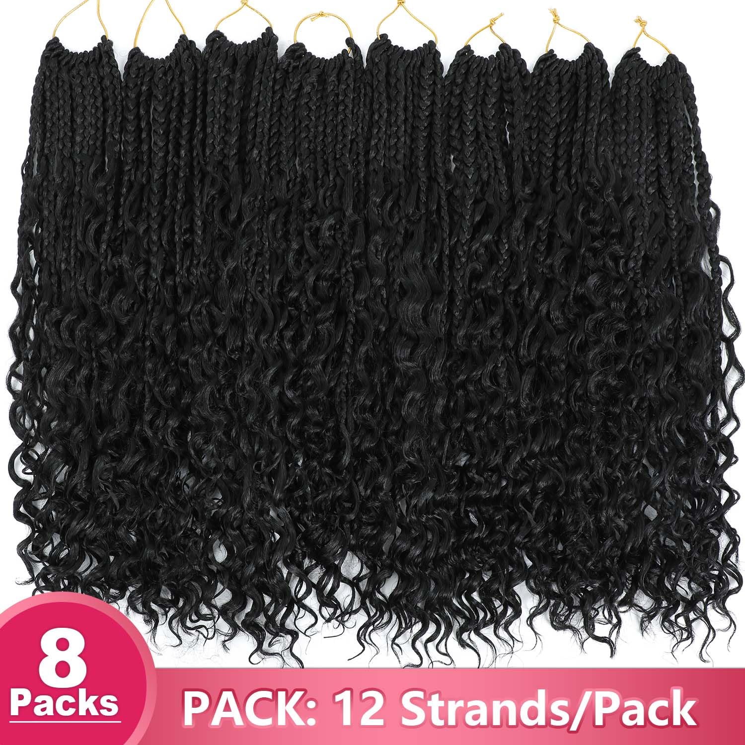 2.Packaging: Goddess Box Braids 12 Strands/Pack, 6Packs/Lot. Length: 14 inches, 18 inches, 24 inches.Bohemian style crochet box braids come in different colors to choose from, with relatively low maintenance costs, making them an excellent choice for your daily styling