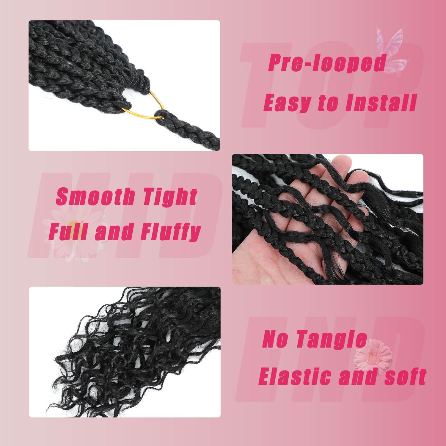 3.Easy to use:Goddess box shaped braids with curly hair are pre arranged, easy to install, saves more time, and is easy to DIY hairstyle, suitable for beginners. You can easily showcase your personality and charm