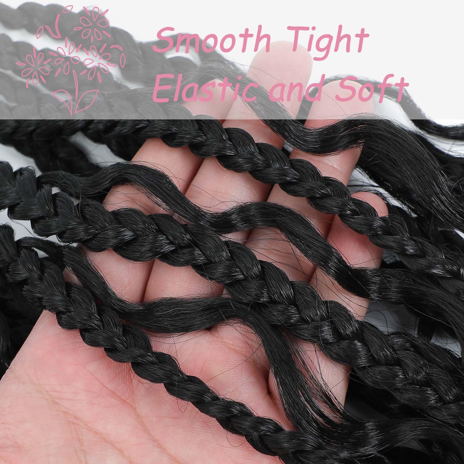 1.Material: Boho Box Braids handmade crochet braid. Made of high quality fiber.Hair is lightweight, tightly shiny and smooth, very soft, not rough, odorless, not tangled, easy to install, natural, and durable