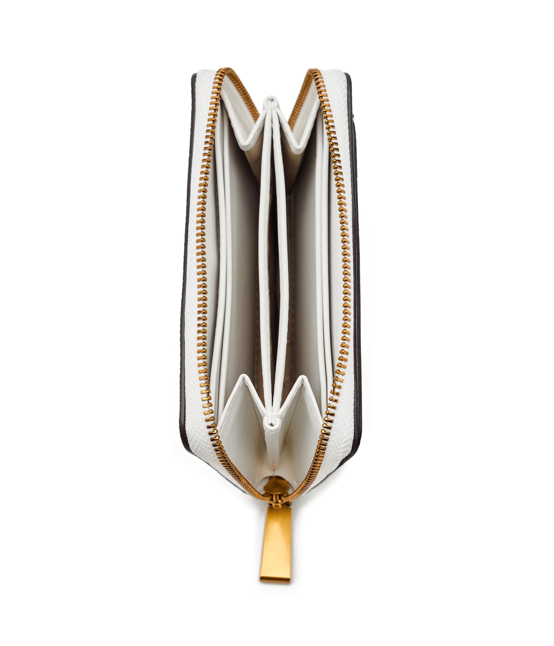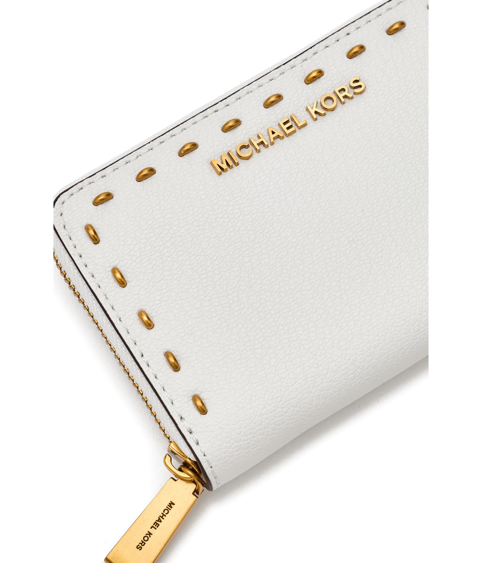 Description Designed in a compact zip-around silhouette, this pebbled leather wallet opens to reveal multiple card slots and space for your cash. We love how an exterior slip pocket offers quick access to your ID. Slip it into the coordinating tote bag, or a clutch come evening.