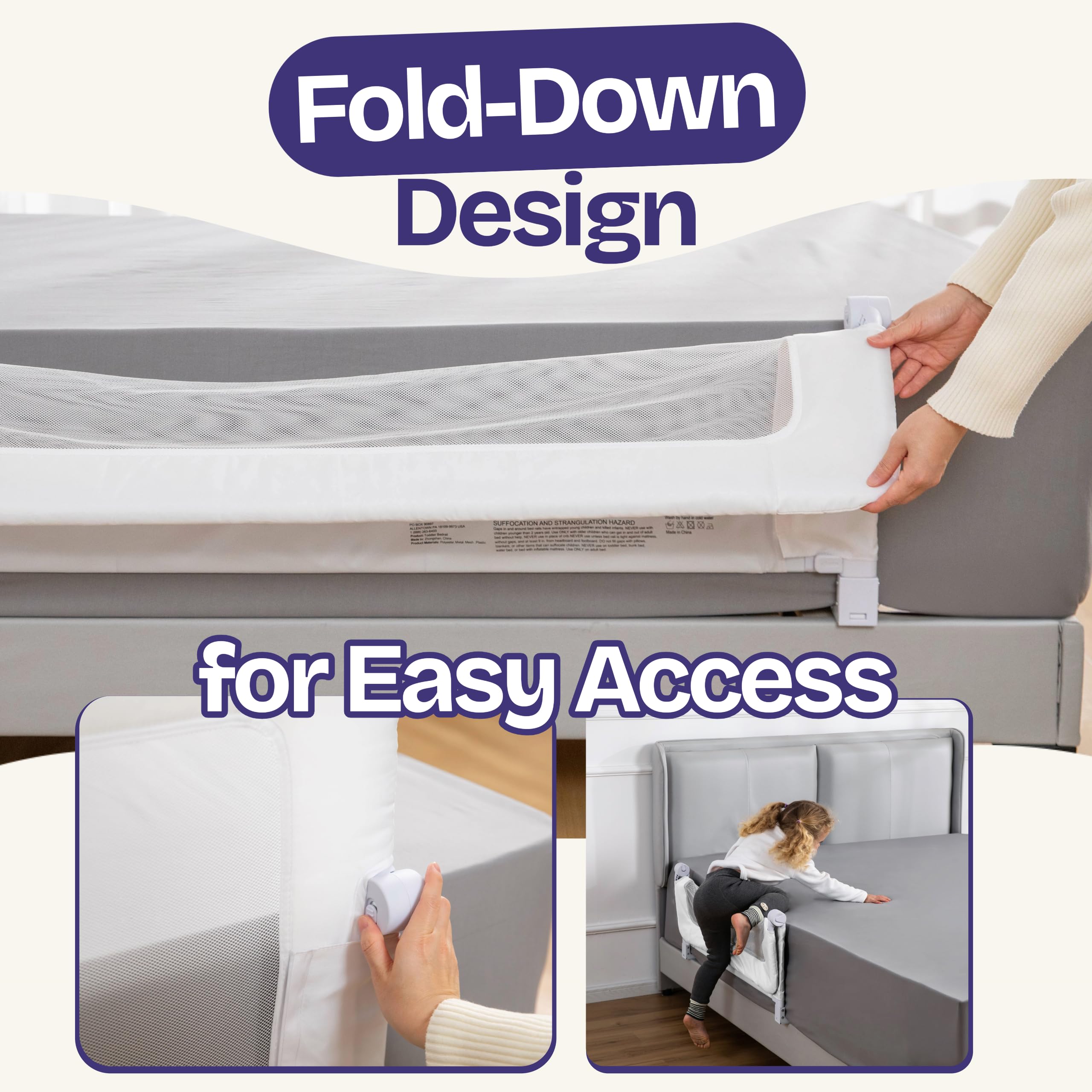 SMOOTH SWING-DOWN DESIGN FOR EASY EVERYDAY ACCESS - The curved swing-down mechanism folds out of the way in seconds for bedtime routines, story time, or changing sheets—then lifts back up smoothly without awkward climbing or lifting.