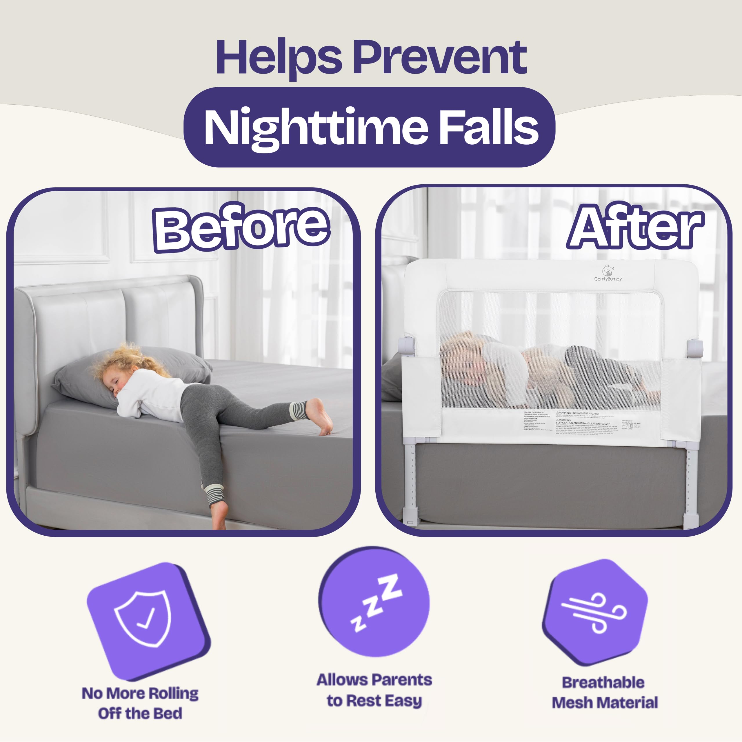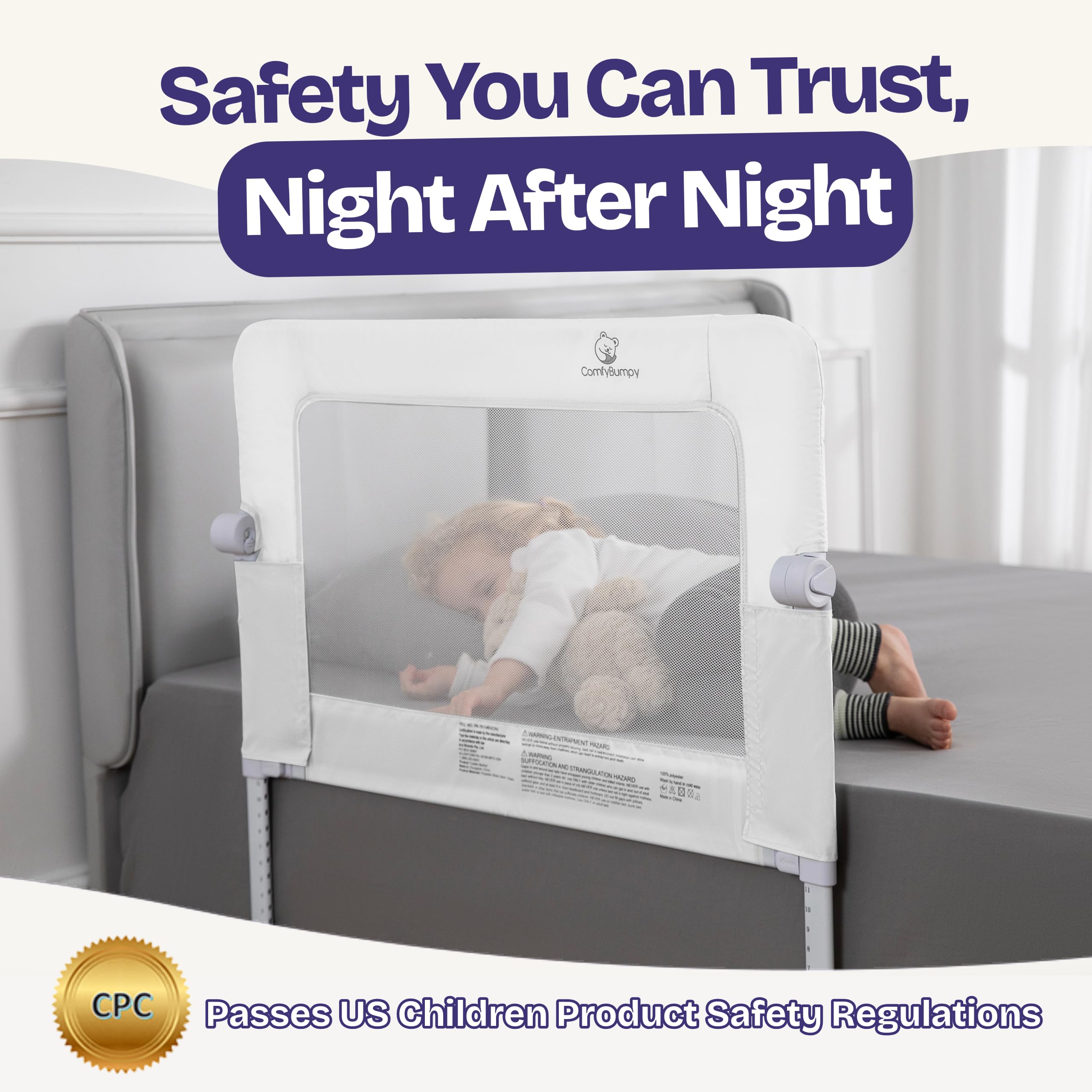 PREMIUM ADJUSTABLE PROTECTION THAT GROWS WITH YOUR CHILD - Designed to help prevent nighttime rolls and falls during the crib-to-bed transition, with adjustable height from 24.4" to 32.3" so you can fine-tune the fit as your child grows or your mattress setup changes.