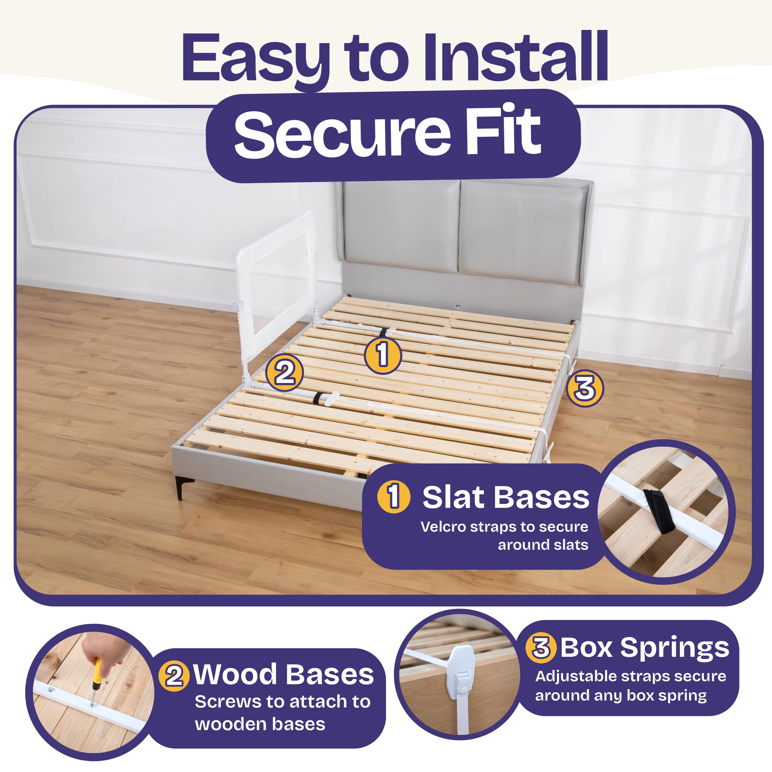 FAST, TOOL-FREE SETUP WITH FLEXIBLE INSTALL OPTIONS - Installs quickly using Velcro, straps, or screws to attach securely to slats, box springs, or wood frames—ready in minutes for solid, dependable everyday use.