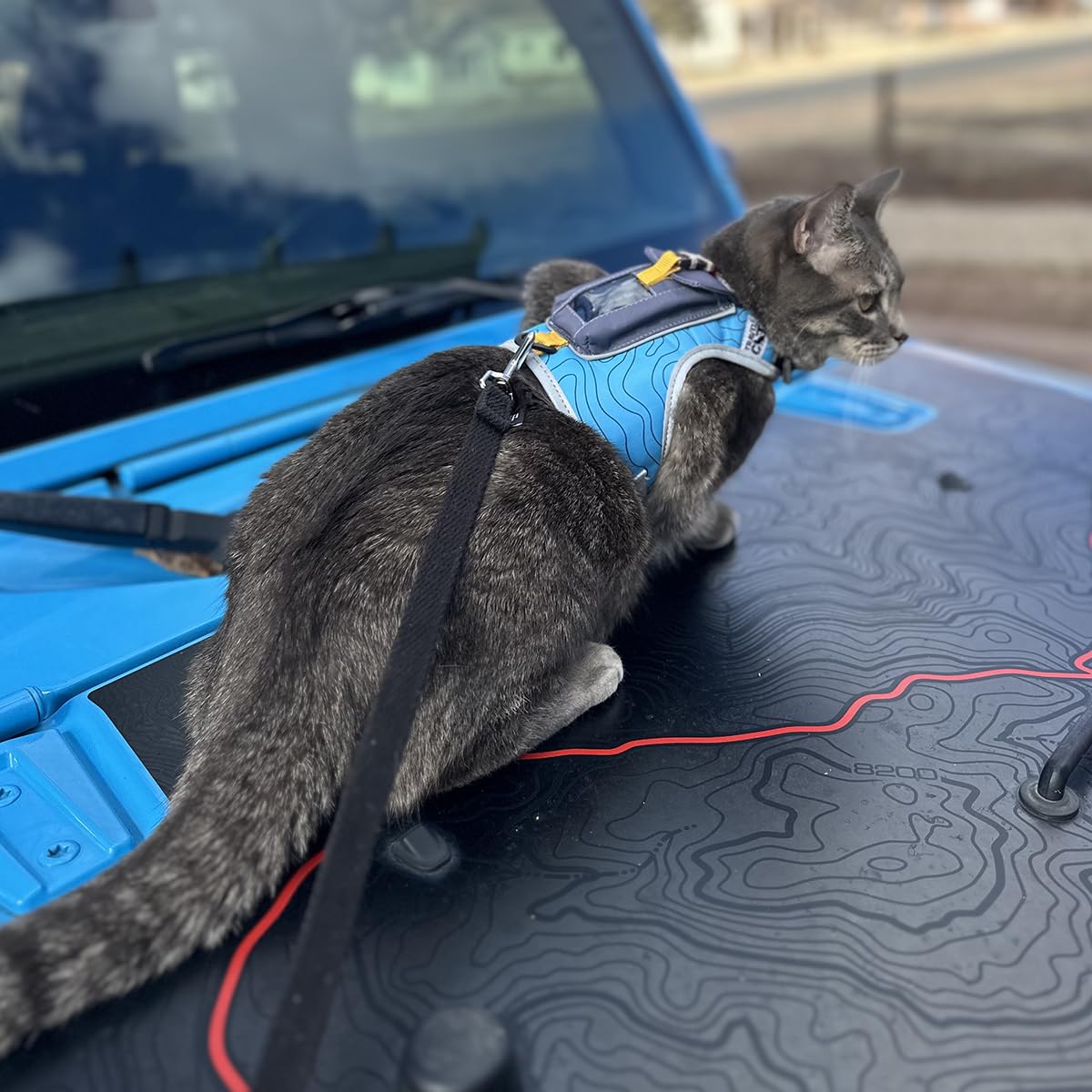 SECURE TRACKER POCKET FOR PEACE OF MIND: "The Pathfinder" big and small cat harness features a unique clear window pocket on the top back, ensuring the Tractive GPS tracker is comfortably carried without adding extra weight to your cat's neck. Please note: The GPS tracker is not included and is sold separately.