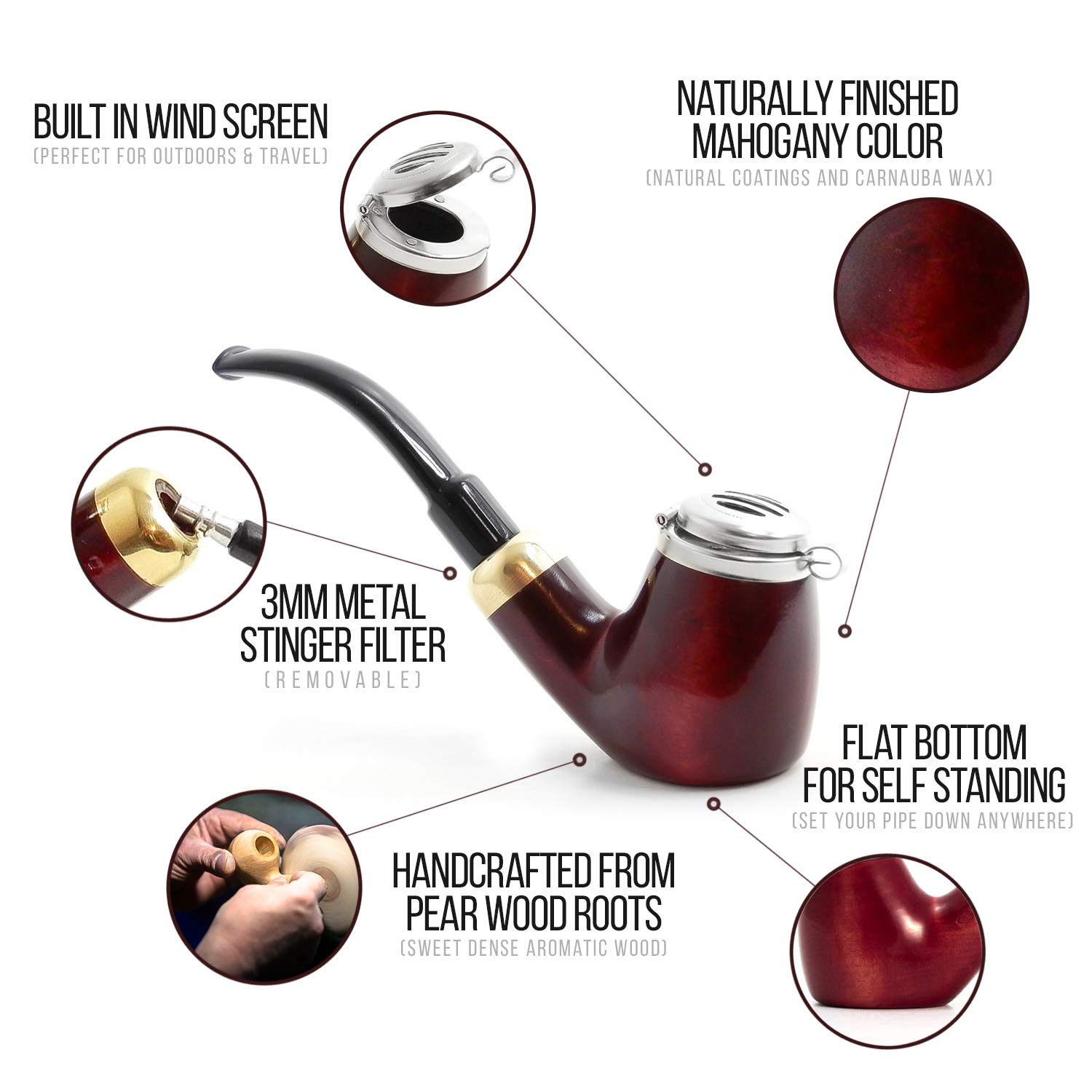 REMOVABLE 3MM FILTER: The tobacco pipe comes with a removable 3mm metal stinger filter. NATURALLY FINISHED: Using natural coatings and carnauba wax we assure the highest quality pipes.