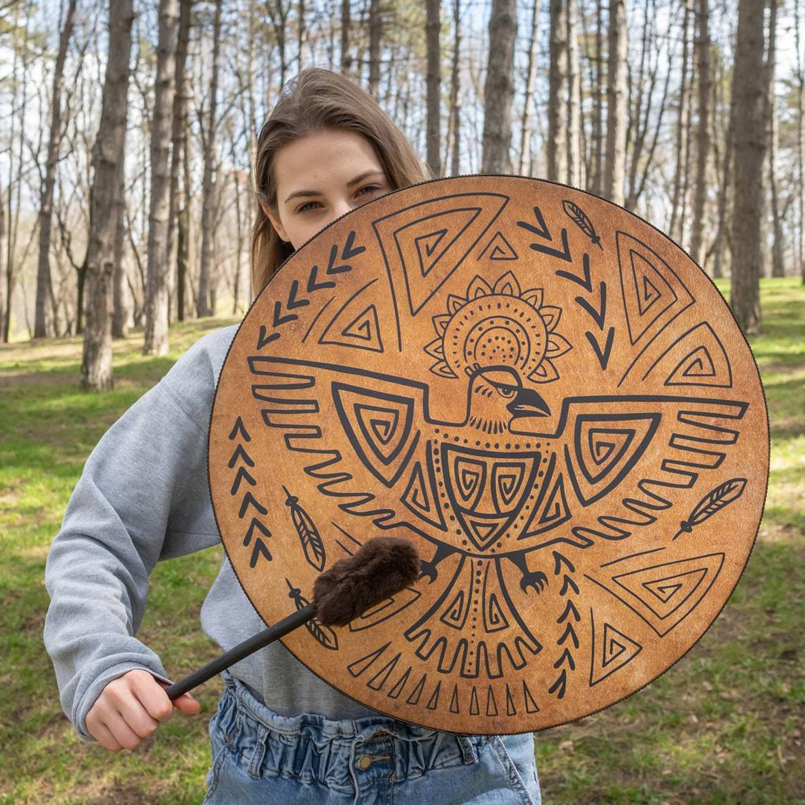 Versatile Usage: Equipped with excellent projection and a boosted bass, our Shaman Drum can be played in various weather conditions. It comes with a rope handle and a mallet, making it suitable for a wide range of settings, such as outdoor gatherings, indoor office decorations, and it's also the perfect choice for shamanic music enthusiasts.