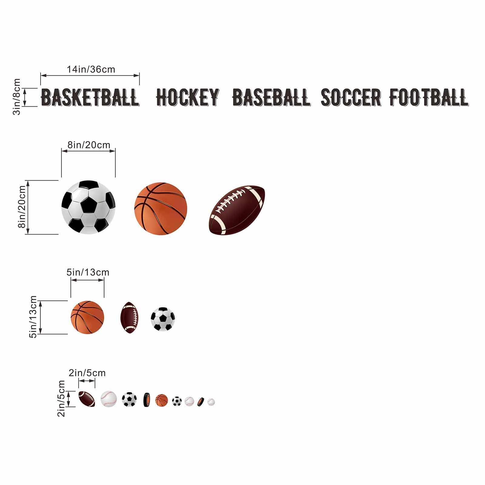 Amimagen Basketball Football Soccer Sports Wall Stickers - Kids Baby Boys Wall Decals - Nursery Playroom Classroom Daycare Game Room Bedroom Home Wall Decor