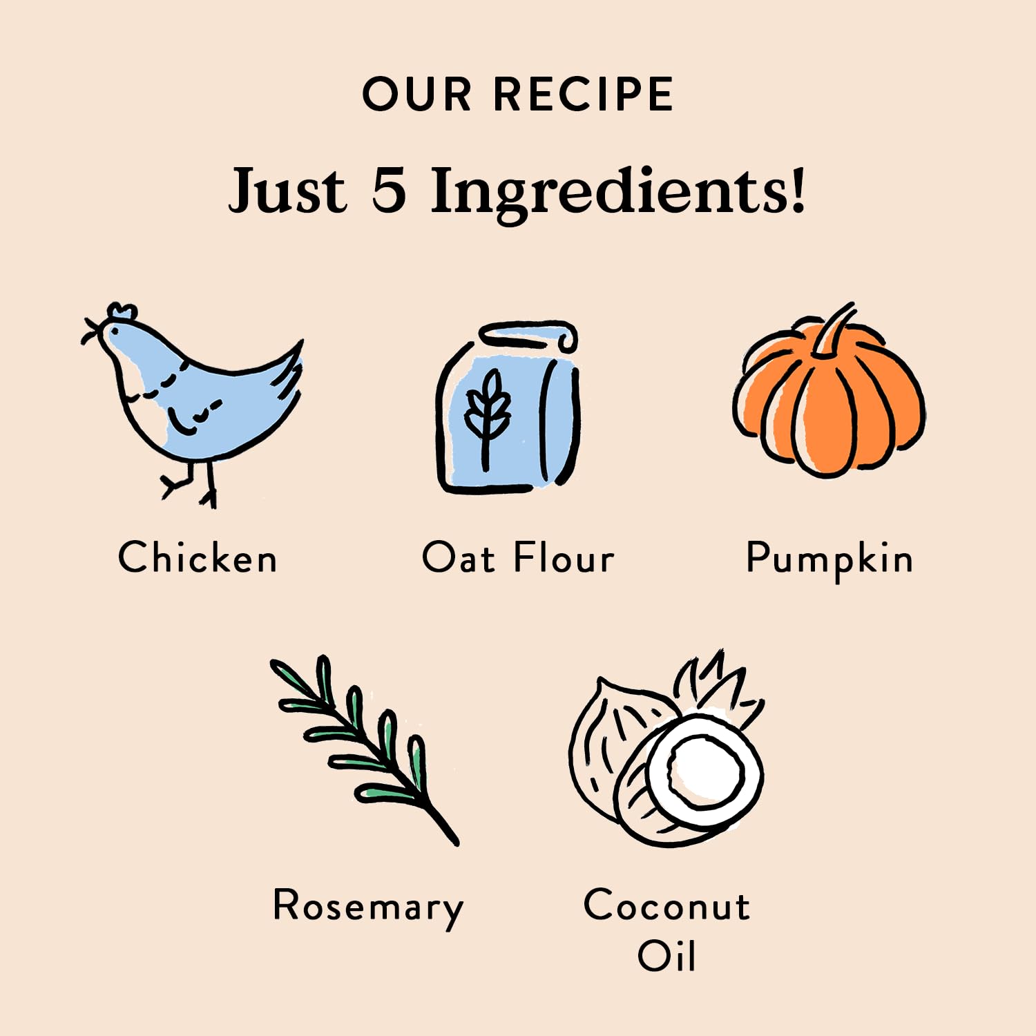 Perfect for Everyday Treating: With just 4 ingredients (oat flour, chicken, pumpkin and rosemary!) and only 12 calories per treat, you can feel good treating your favorite pup to this yummy recipe.