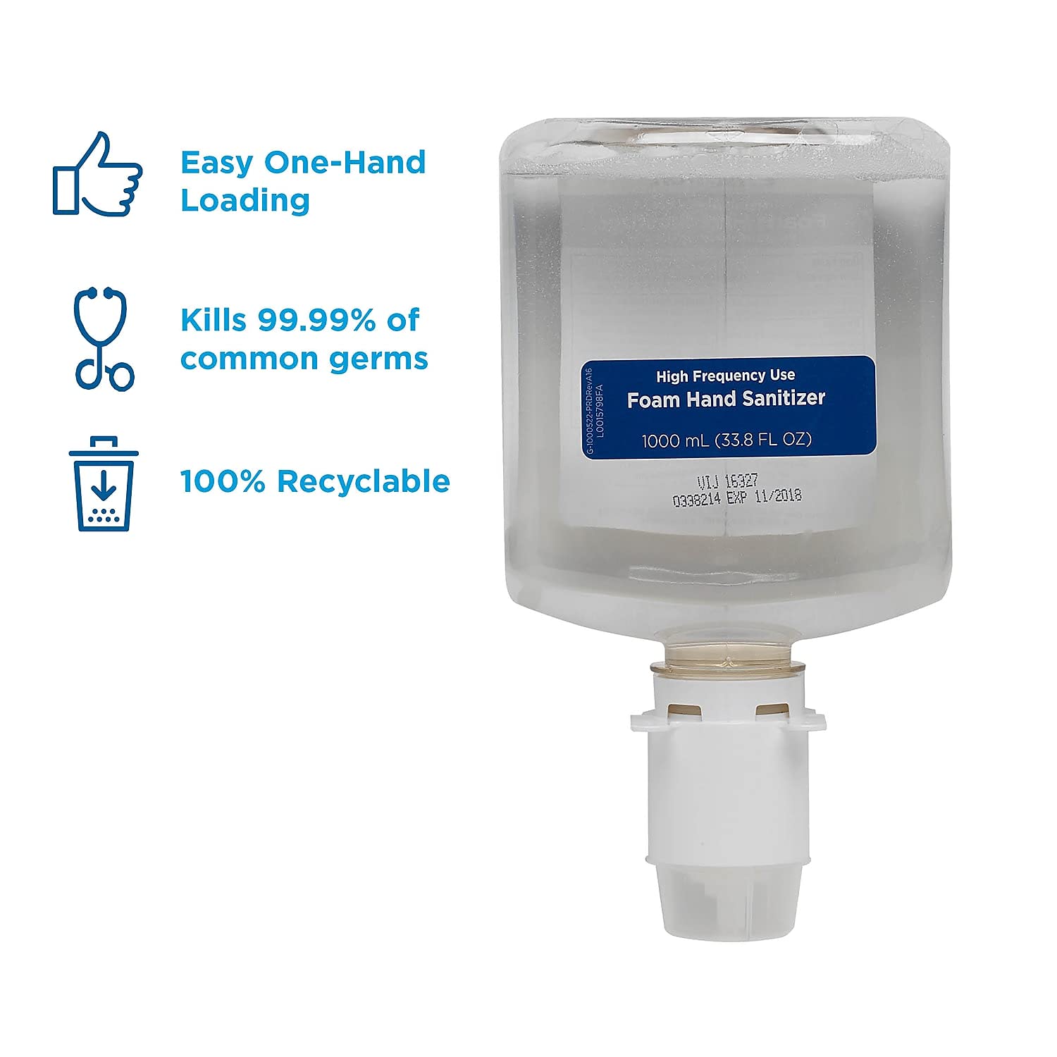 Gentle foam soap contains a unique mild conditioning formula that leaves skin feeling fresh and is gentle enough for daily use. Exceptionally mild formula is dermatologist tested for mildness and skin compatibility. Hypoallergenic; great for those who have allergies or sensitivities. Allows for thorough use; 99 percent of product is emptied before replacement is needed. Designed to work with Pacific Blue UltraTM soap dispensers (sold separately). Capacity (Volume): 1000 mL; Scent: Unscented; Packing Type: Bottle; Color(s): Clear.