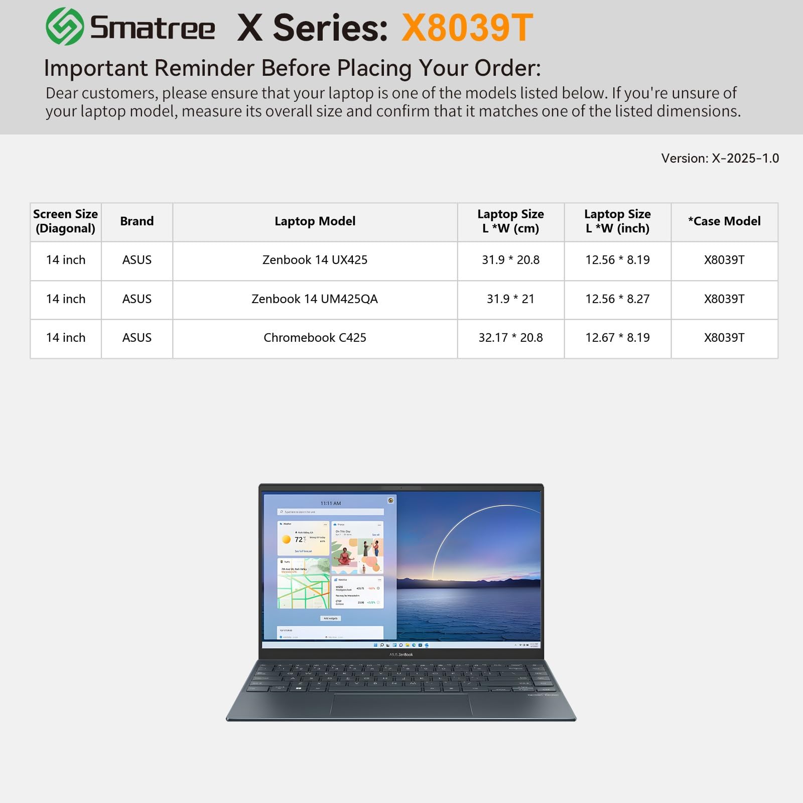 Compatibility: designed to perfectly fit for 14 inch ASUS Chromebook C425/Plus C425; 14 inch ASUS Zenbook 14 UM425QA/UX425