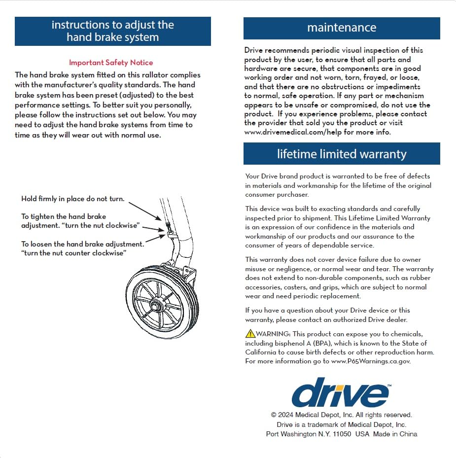 Limited Lifetime Warranty: Your Drive walker is backed by a limited lifetime warranty so you can buy with confidence