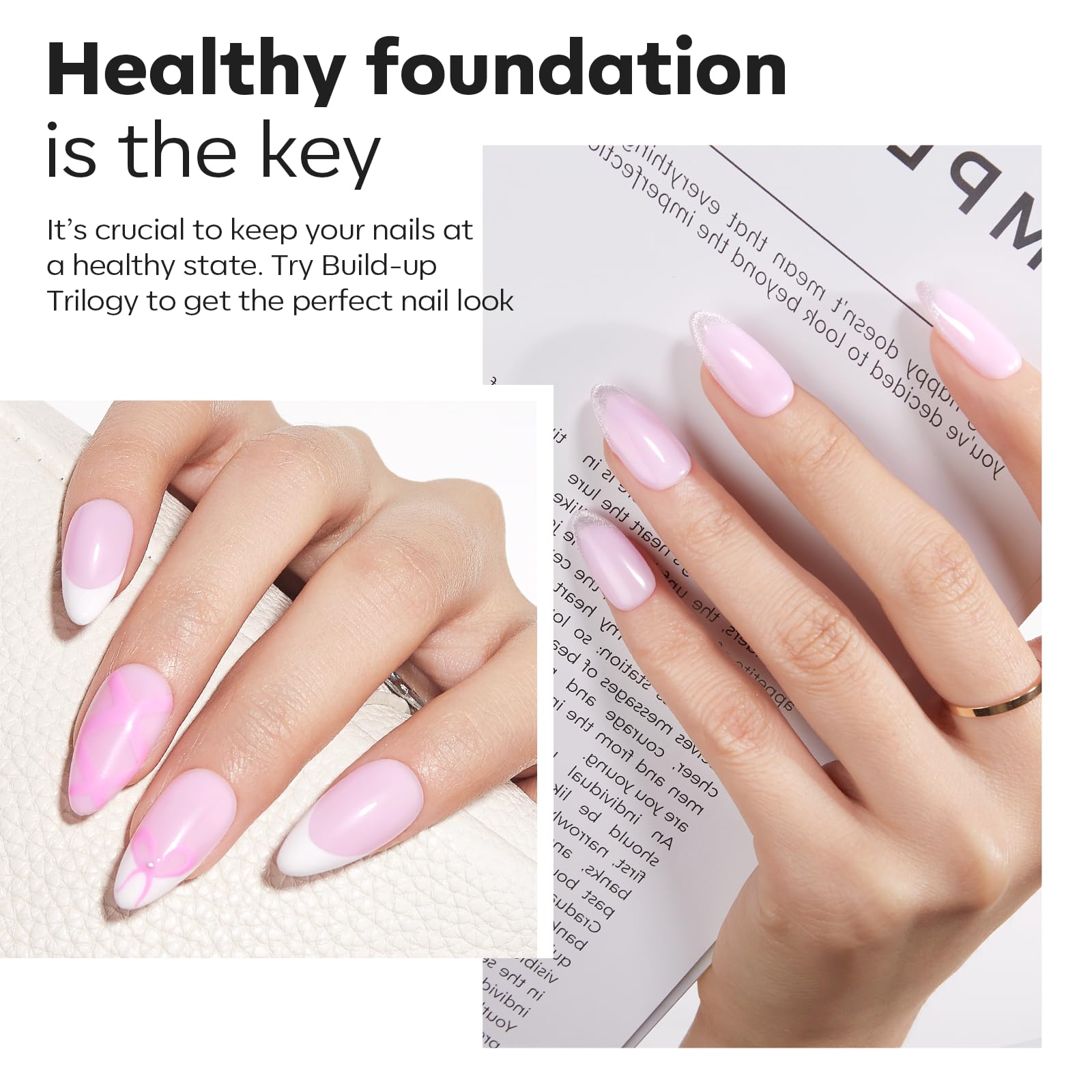 Nail Thickening Build-up Triology: Upgraded Nail Thickening Protection Trio Set with 1* 15 ml Clear Builder Nail Gel + 1* 15 ml Shiny Top Coat. Exclusive combination for providing triple nail thickening protection for thin, soft, or brittle cracked nails, ideal for building the look you’ve always dreamed of, and achieving the best modern salon-looking gel mani at home with a small fee. Note: Need to be cured under U V/LED lamp for 60-90 s