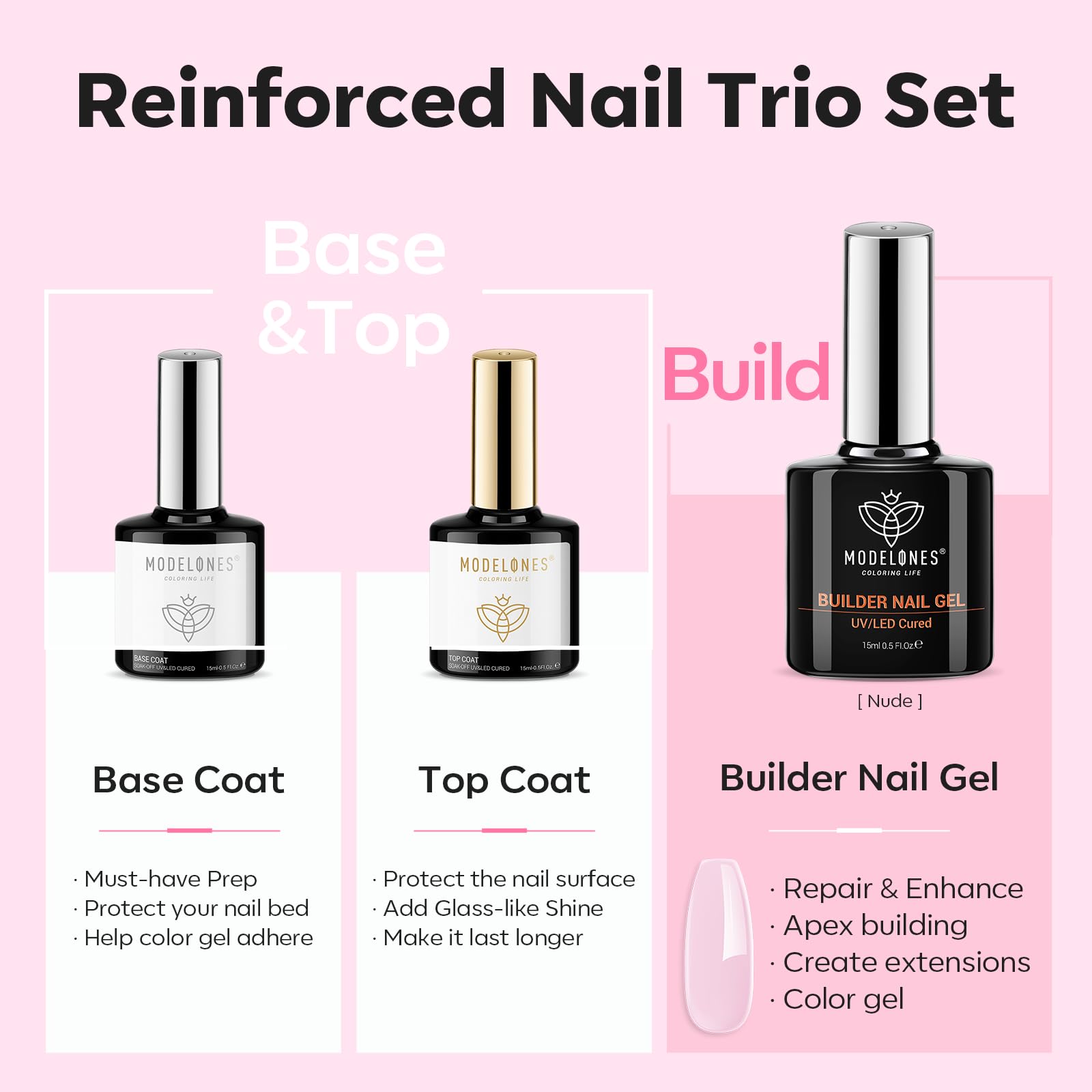30 Days No Peel-Off & No Bubbles: Modelones builder nail gel is made of professional formula, which is adjusted after 72 tests. Say Goodbye to Air-bubble and Peel-off problems. High durability clear gel builder can stay last longer and brings you natural, strong, flexible, and feather-light nails. Long-lasting for 30+ days with with proper application