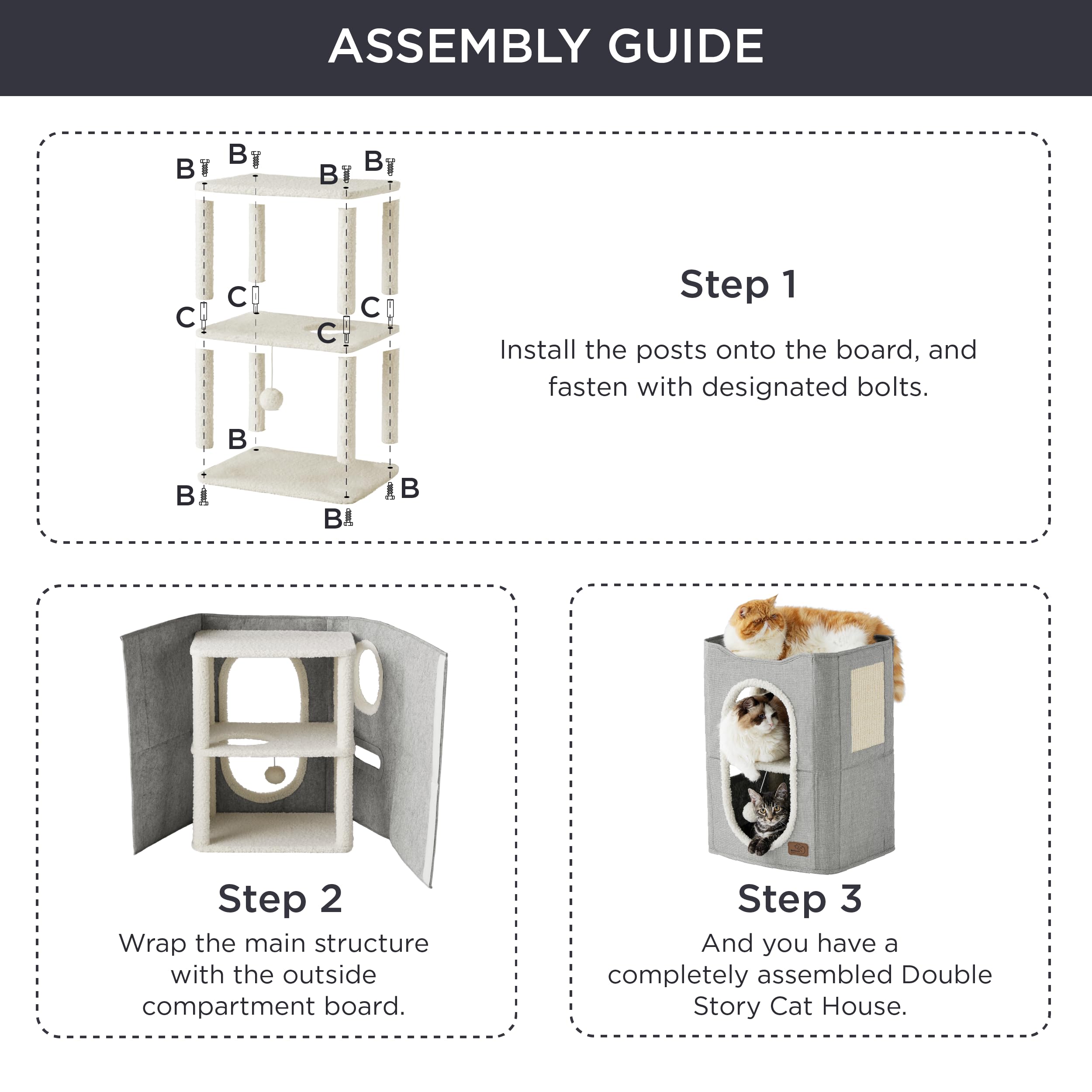 Pet-Safe Design: This 2-level cat house is crafted with CARB Certified high-strength medium density fiberboard and plush, gentle lambswool fabric for added comfort. Plus, it's got a sturdy sisal scratching board for hours of kitty entertainment.