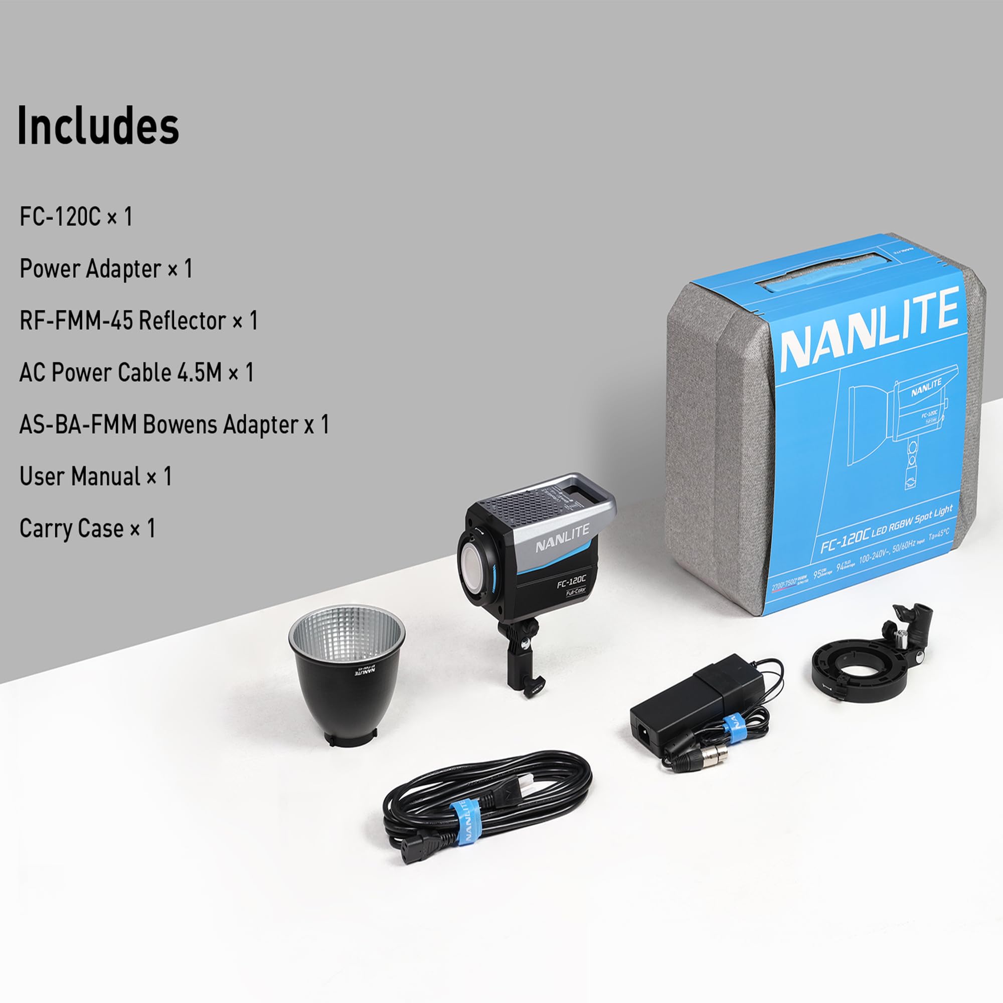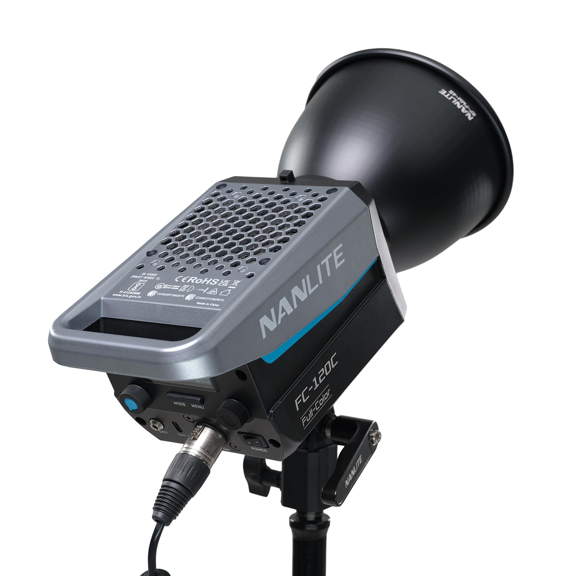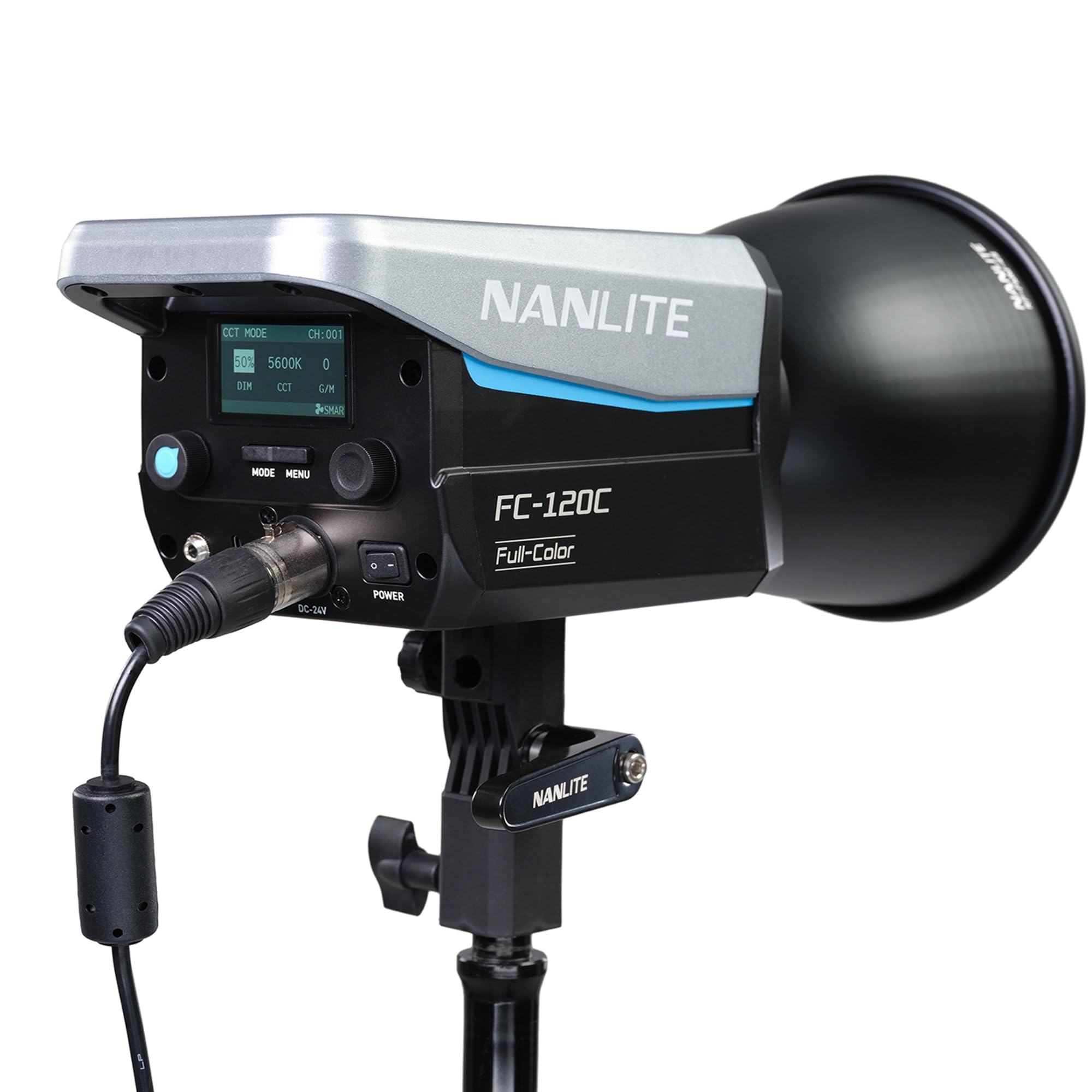 Flexible Power, Supply Options: Nanlite FC-120C can be powered by an adapter, V-mount battery or PD adapter.All these three power supply methods support the full power output of the FC-120C, providing stable power and flexible options for creation.