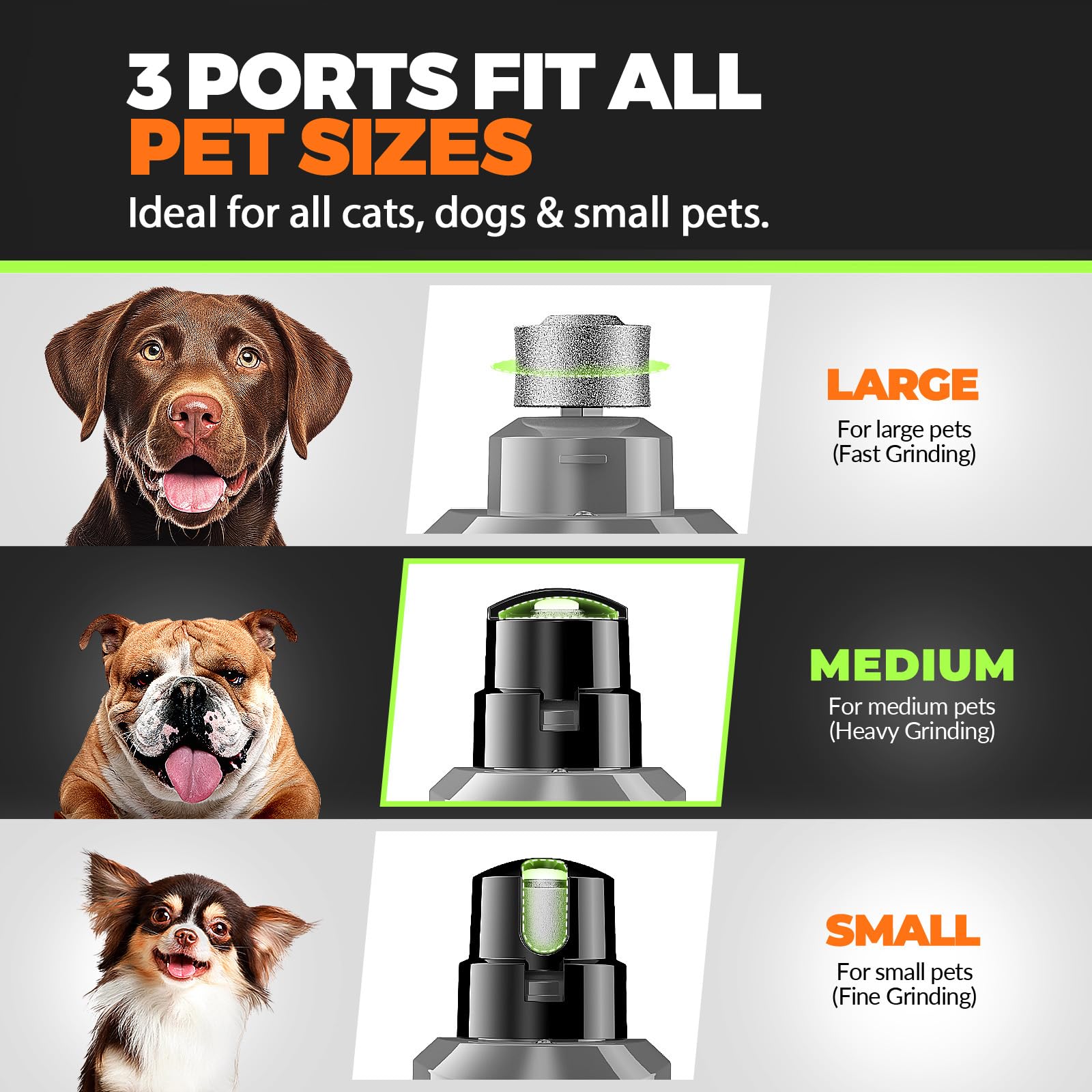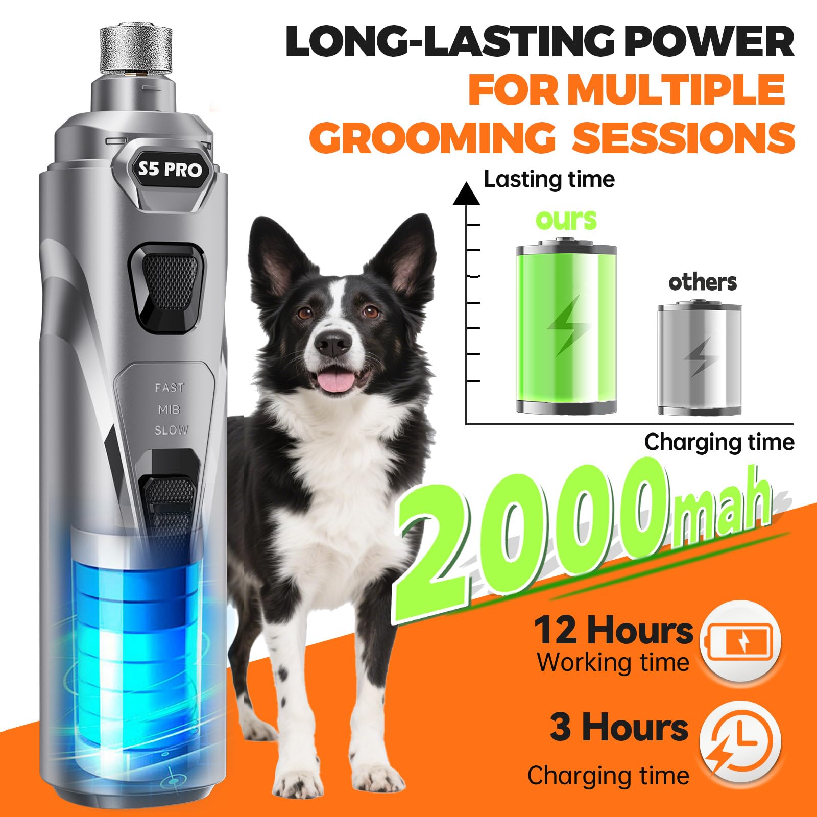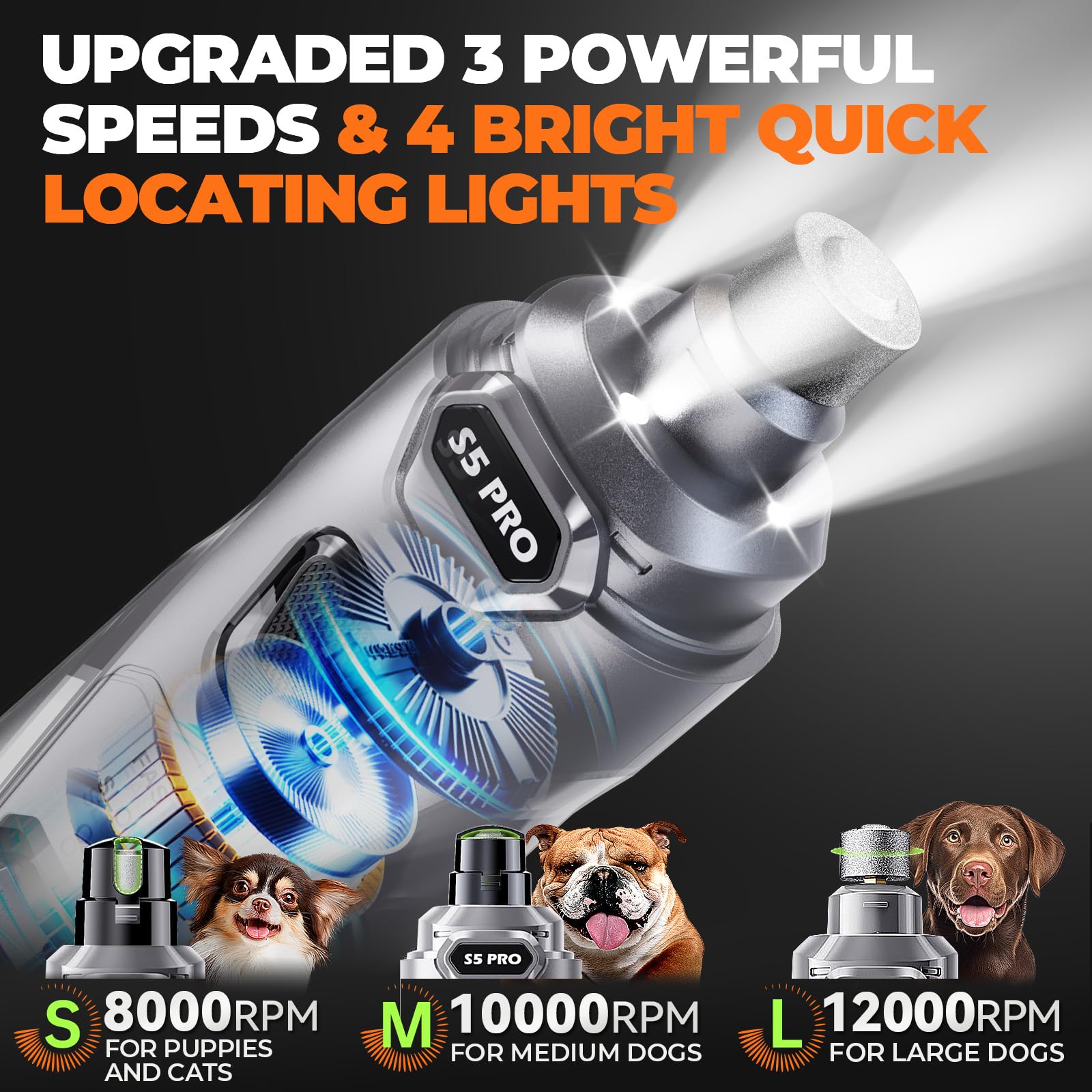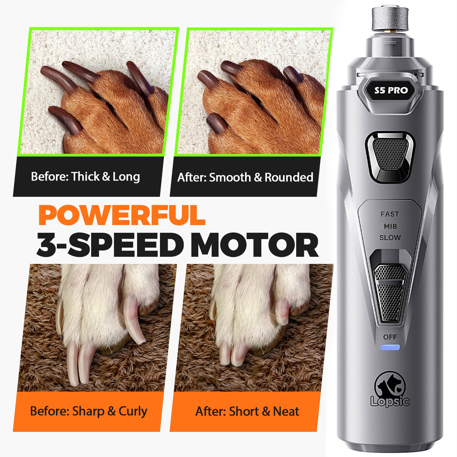 ๐-๐๐ฉ๐๐๐ & ๐๐,๐๐๐ ๐๐๐ ๐๐จ๐ฐ๐๐ซ๐๐ฎ๐ฅ ๐๐จ๐ญ๐จ๐ซ: Low speed for small dogs & puppies; medium & high speed for medium to large dogs with thick, tough nails. 12,000 RPM motor provides strong, efficient grinding power