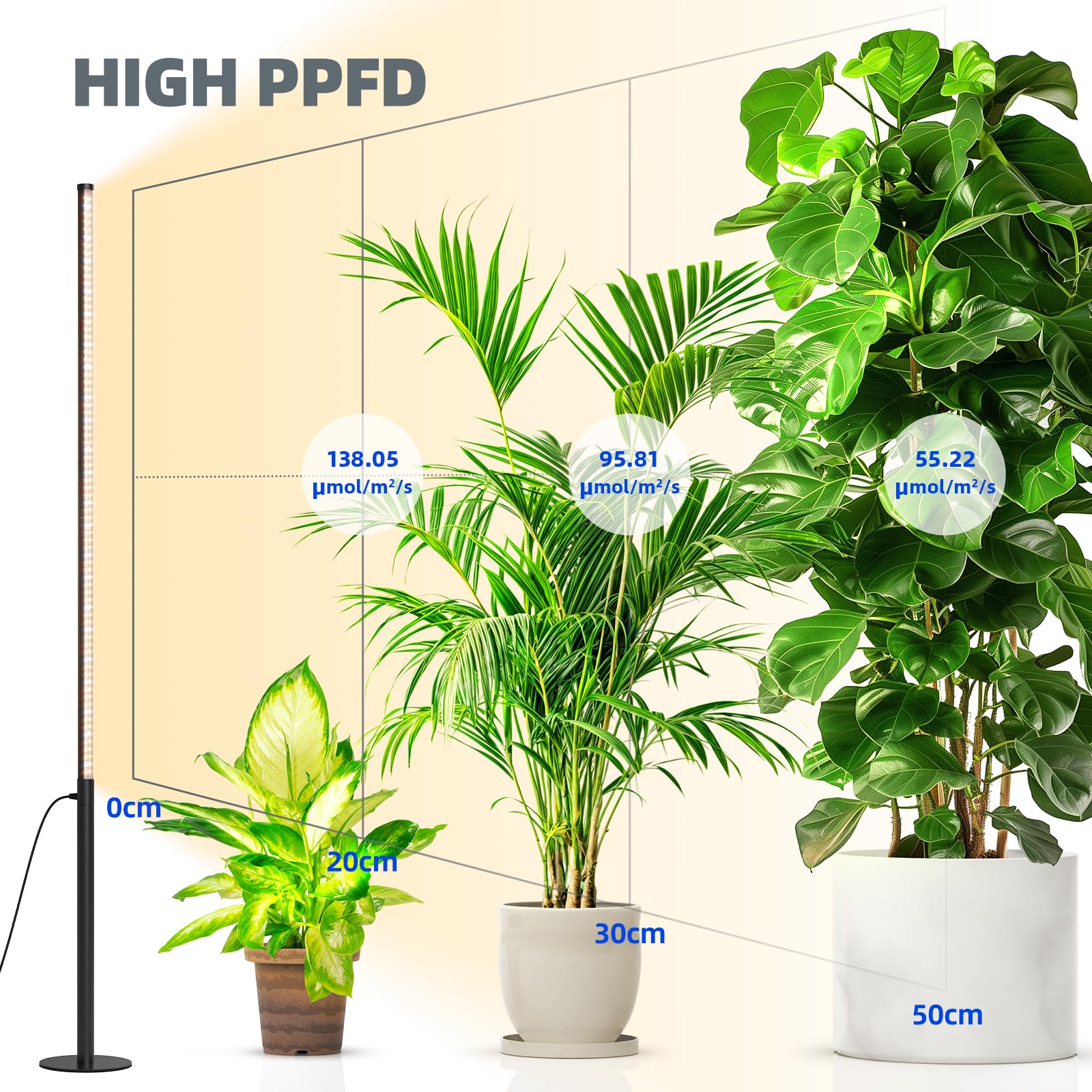 Adjustable Height for Flexible Lighting : Experience the versatility of our upgraded vertical grow light. With an adjustable height range of 4ft-5.6ft, it caters to tall plants and large plant shelves, ensuring optimal illumination