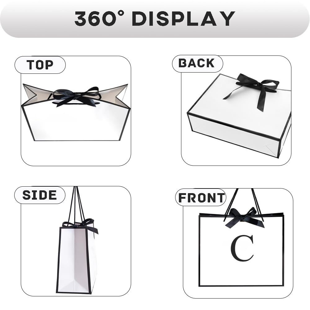 【IDEA GIFT BAGS for WOMEN MEN】Initial gift paper bags are both stylish and practical. Could be as a perfect gifts for teachers appreciation, bride, ladies,gentlemen,bridal shower gifts, mothers day gifts, fathers day gifts,wedding gifts, graduation gifts,birthday gifts for females and males,best friend, wife gifts,husband gifts,bridesmaids, hostess gifts, bride to be gifts, maid of honor, mother and father of the bride/groom, mom,dad,aunt,uncle,girlfriend,boyfriend,brother and sister,etc.