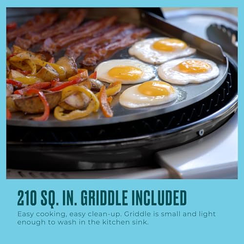 INCLUDED GRIDDLE: The included 210-square-inch stainless steel griddle can cook breakfast, lunch, or dinner for the whole family, and yet it’s small and light enough to easily wash in your kitchen sink.
