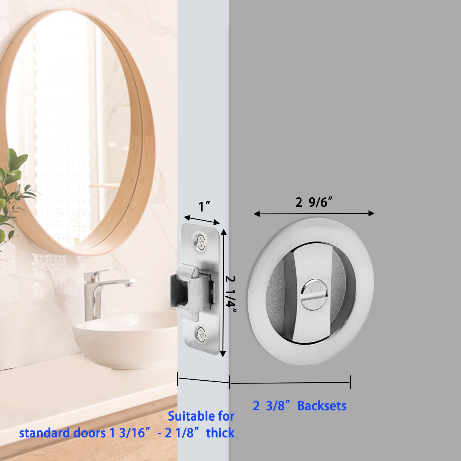Dontay Pocket Door Lock, Color Coded Indicators, Privacy (Bed/Bath) Handles Latch, 2-3/8" Backset, Hardware for 1 3/8” to 2 3/16” Thickness Door