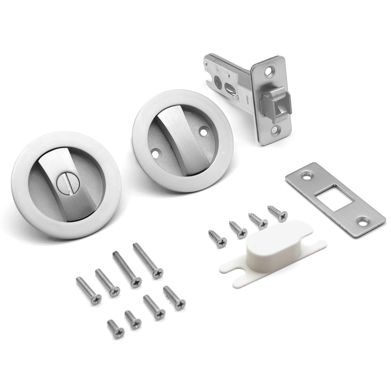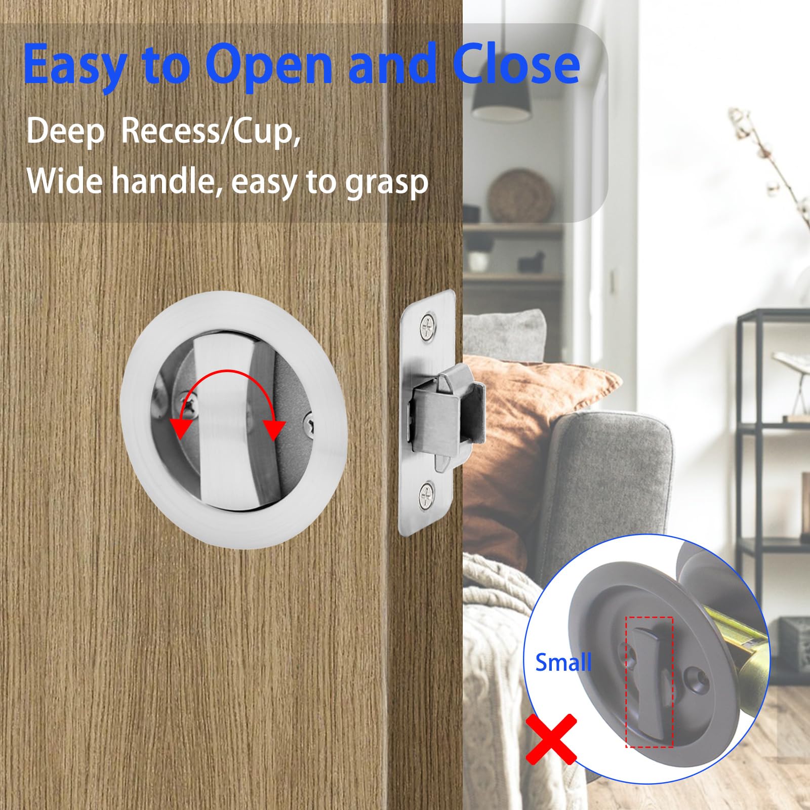 Large Locking Lever: Large locking lever make this lock user-friendly and accessible to people of all ages and abilities.This pocket door privacy lock and pull has a wide, easy grip design and is for left or right handed doors.