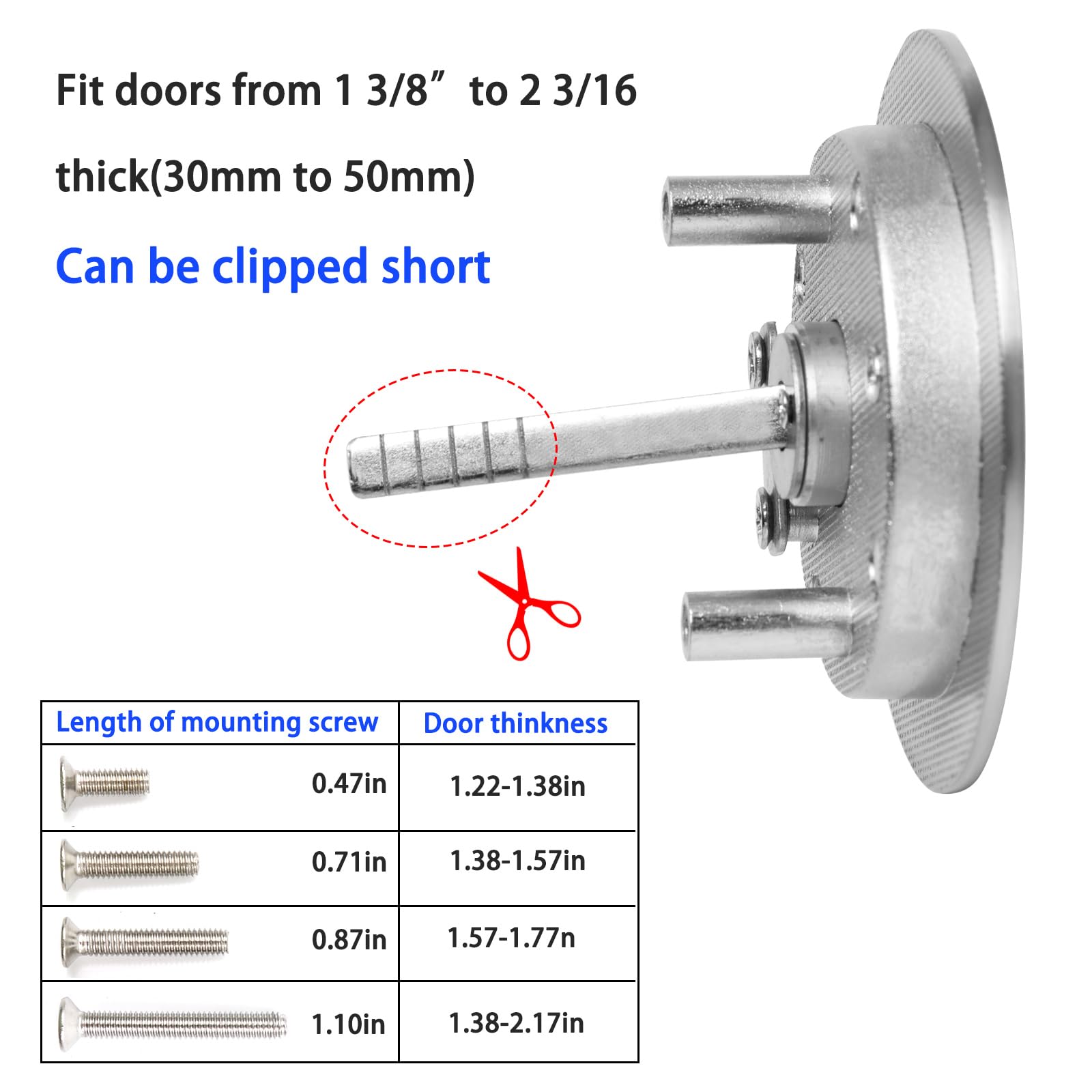 High Quality Material: Alloy steel with electroplated surface brushed nickel, and matte Black, corrosion resistant. Specification: 2-1/16” diameter hole, 1” diameter latch hole and 2-3/8” backseat.