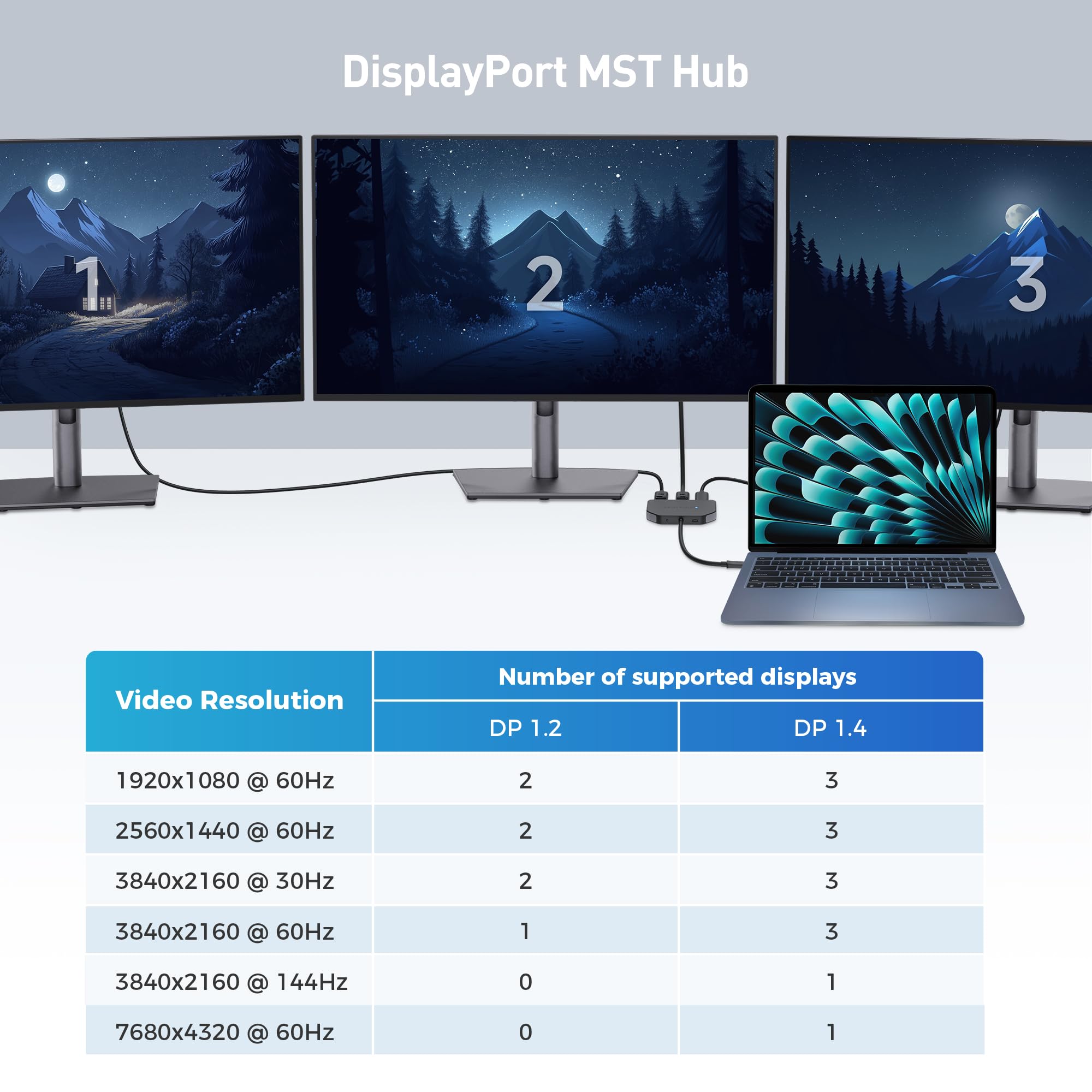High-Performance Triple Display: This USB C MST Hub is perfect for Windows users needing high-bandwidth video from Nvidia RTX graphics cards and Intel Ice Lake or higher chips. It features two DisplayPort 1.4 ports and one HDMI 2.0 port, making it an ideal USB C triple monitor adapter for multi-display setups.