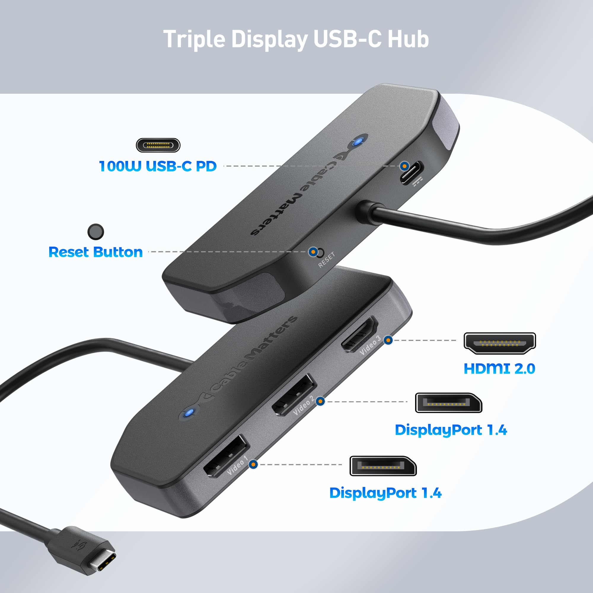 Enhanced Video Quality: Experience vibrant visuals with increased bandwidth that supports more pixels and richer colors. This USB-C hub DisplayPort and HDMI facilitates triple 4K 60Hz displays and supports HDR, offering a significant upgrade over DisplayPort 1.2.