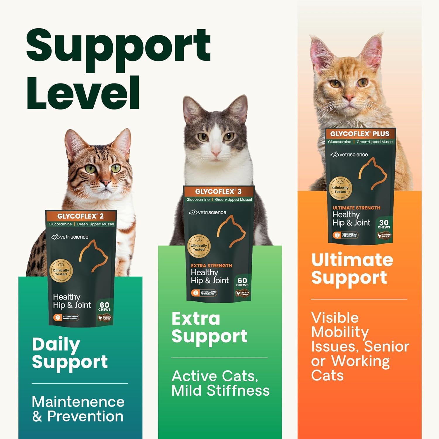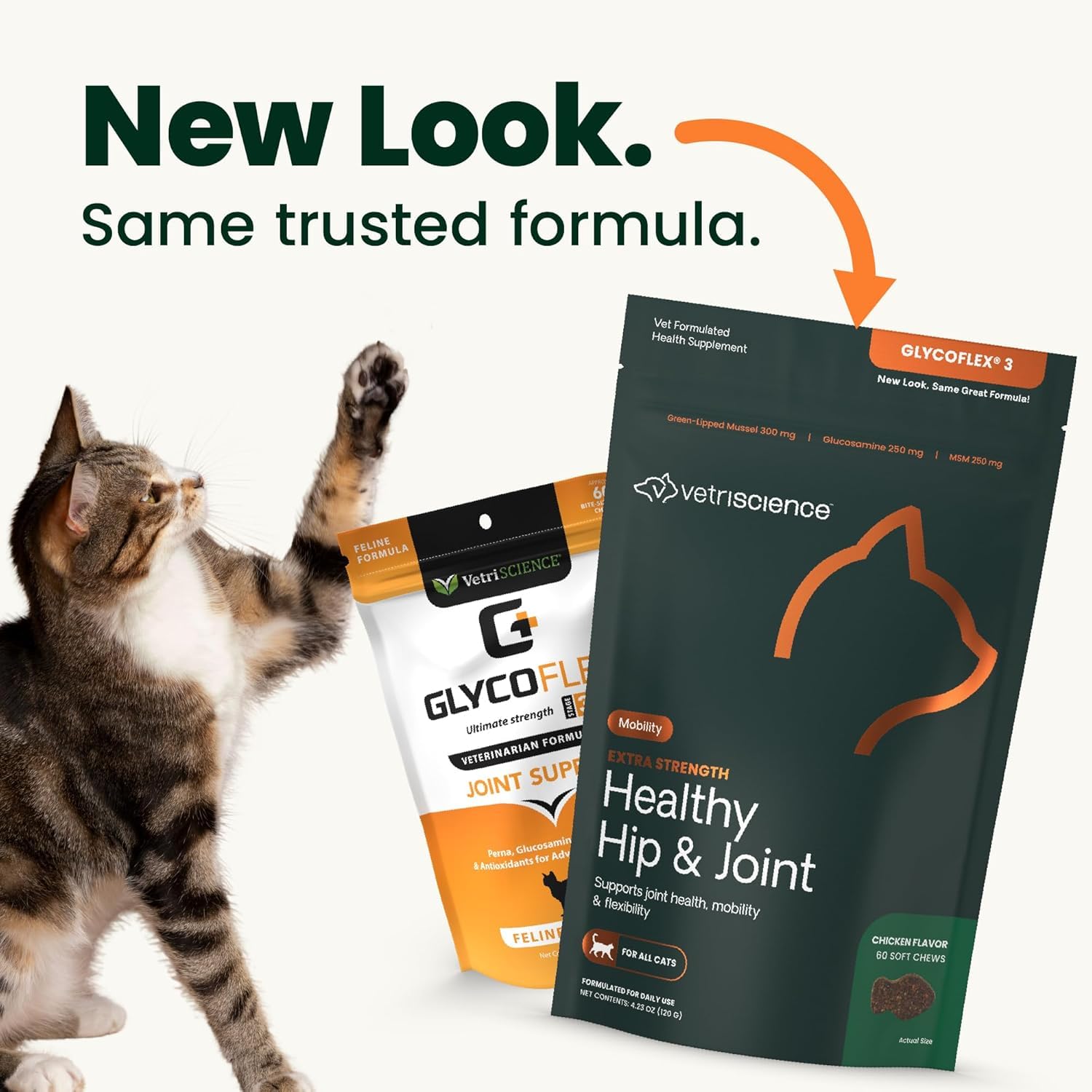 Glucosamine for Cats: Extra Strength Healthy Hip & Joint (previously GlycoFlex Stage 3) is our advanced-strength hip and joint supplement for cats, with powerful levels of active ingredients that work together to help maintain mobility, lubricate joints, and support flexibility