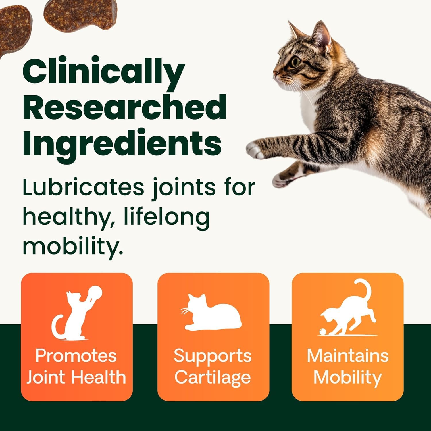 For Active & Senior Cats: Bite-sized hip and joint chews are ideal for cats that are slowing down or showing signs of fatigue or weakness in their hind end as well as cats that are recovering from surgery or periods of restricted movement