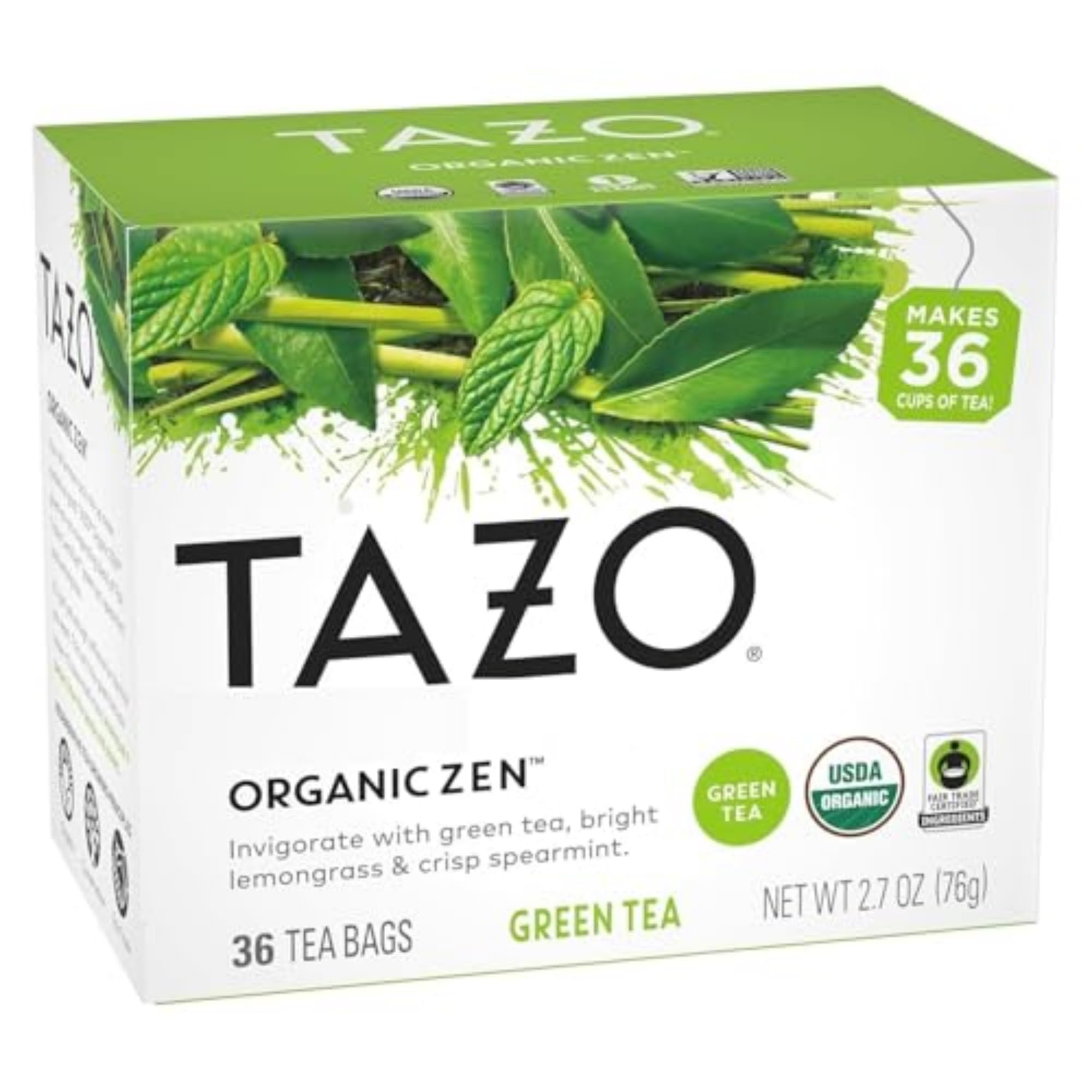 WHAT YOU'LL GET: TAZO Organic Zen Green Tea, non-GMO and kosher certified, 36 tea bags per pack