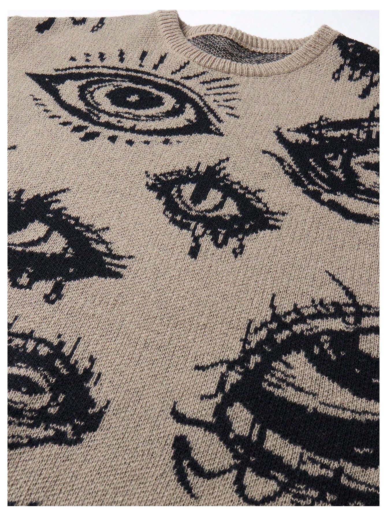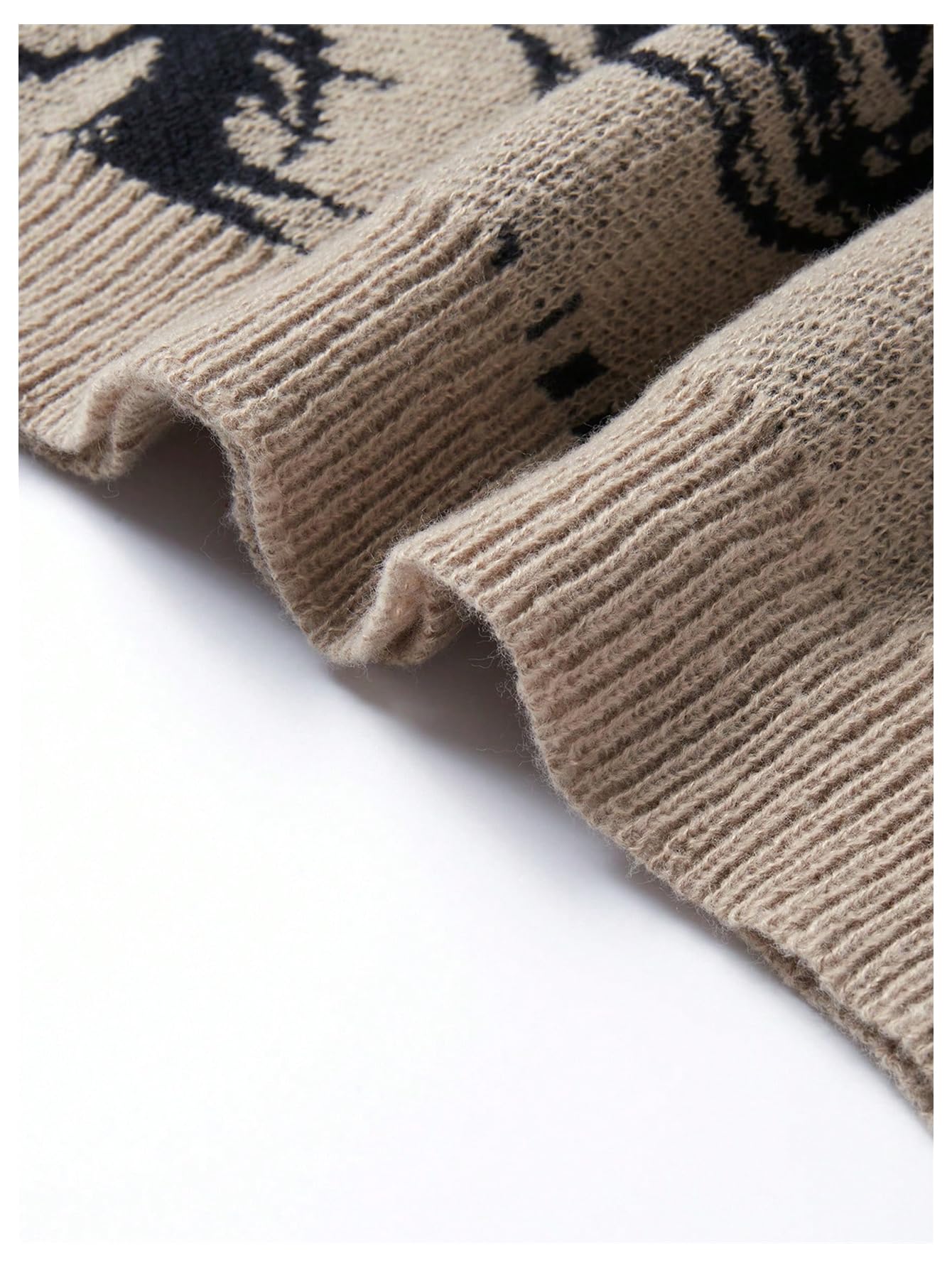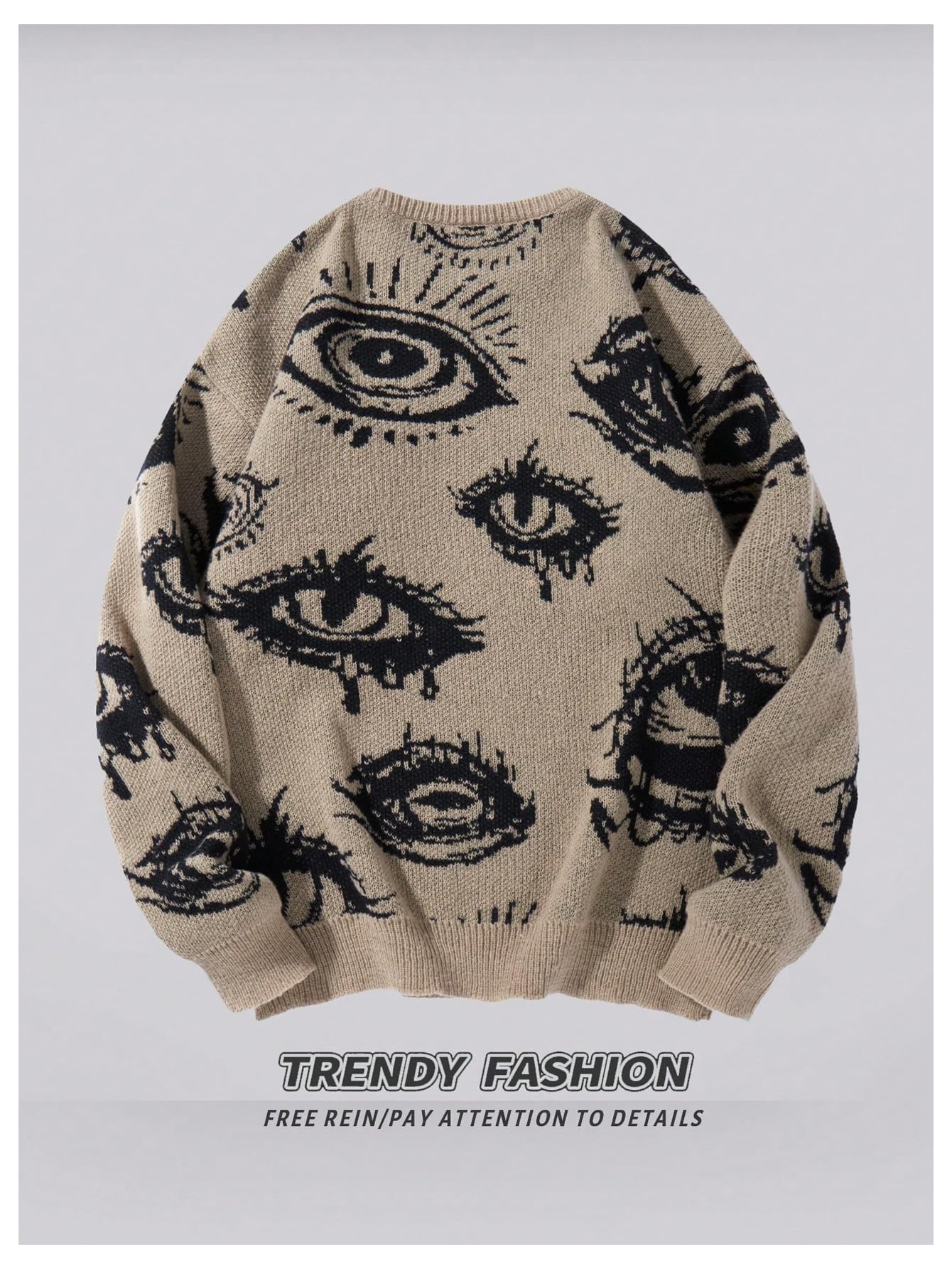 Features: Graphic, round neck, long sleeve, oversized, halloween sweater, loose fit pullover sweaters for men