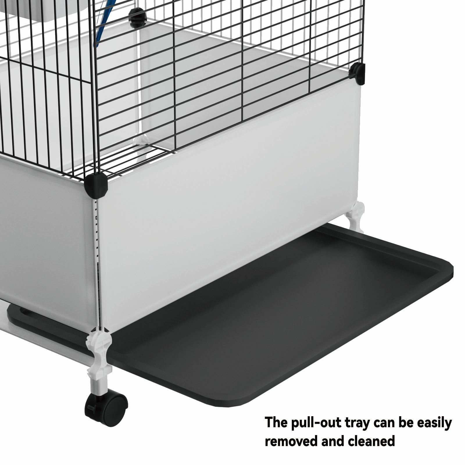 [Easy Cleaning]: The parakeet cage has a pull-out tray at the bottom. It collects litter and can be easily removed. The entire cage, including the tray, can be quickly rinsed with water. The partition can prevent pet feces and urine from splashing. Your bird will enjoy a clean and refreshed home.