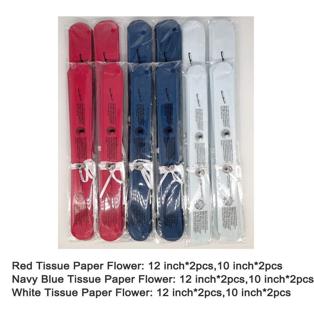 TISSUE PAPER FLOWER RED BLUE AND WHITE 12pc in 2 sizes,package include red crafts flower 4pc (2pc in 12'' and 2pc in 10''), blue crafts flower 4pc(2pc in 12'' and 2pc in 10''), white crafts flower 4pc(2pc in 12'' and 2pc in 10'')