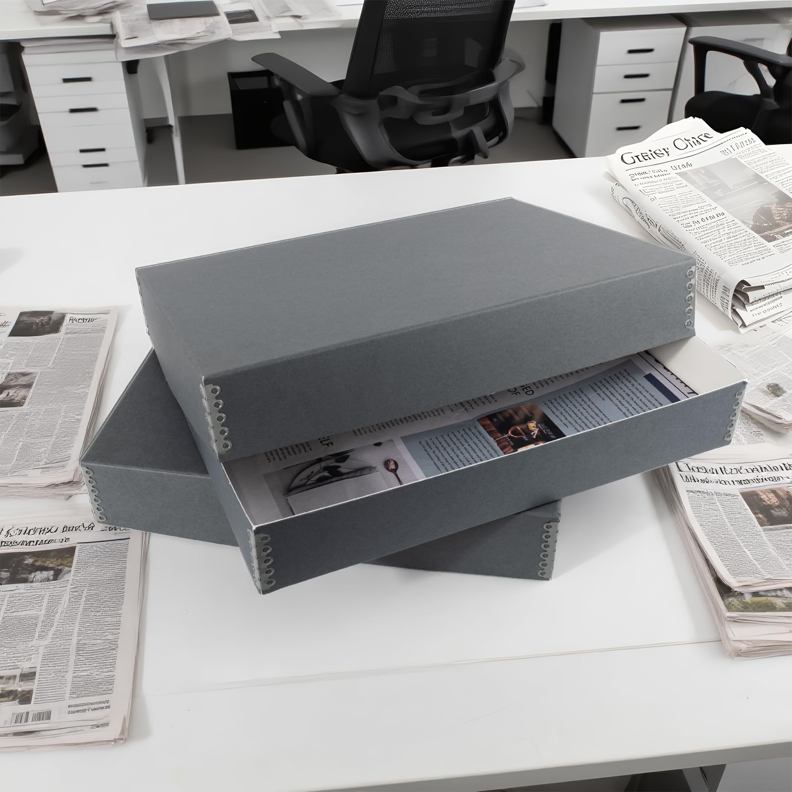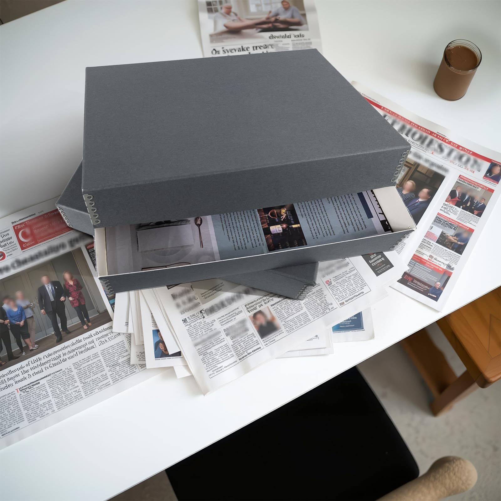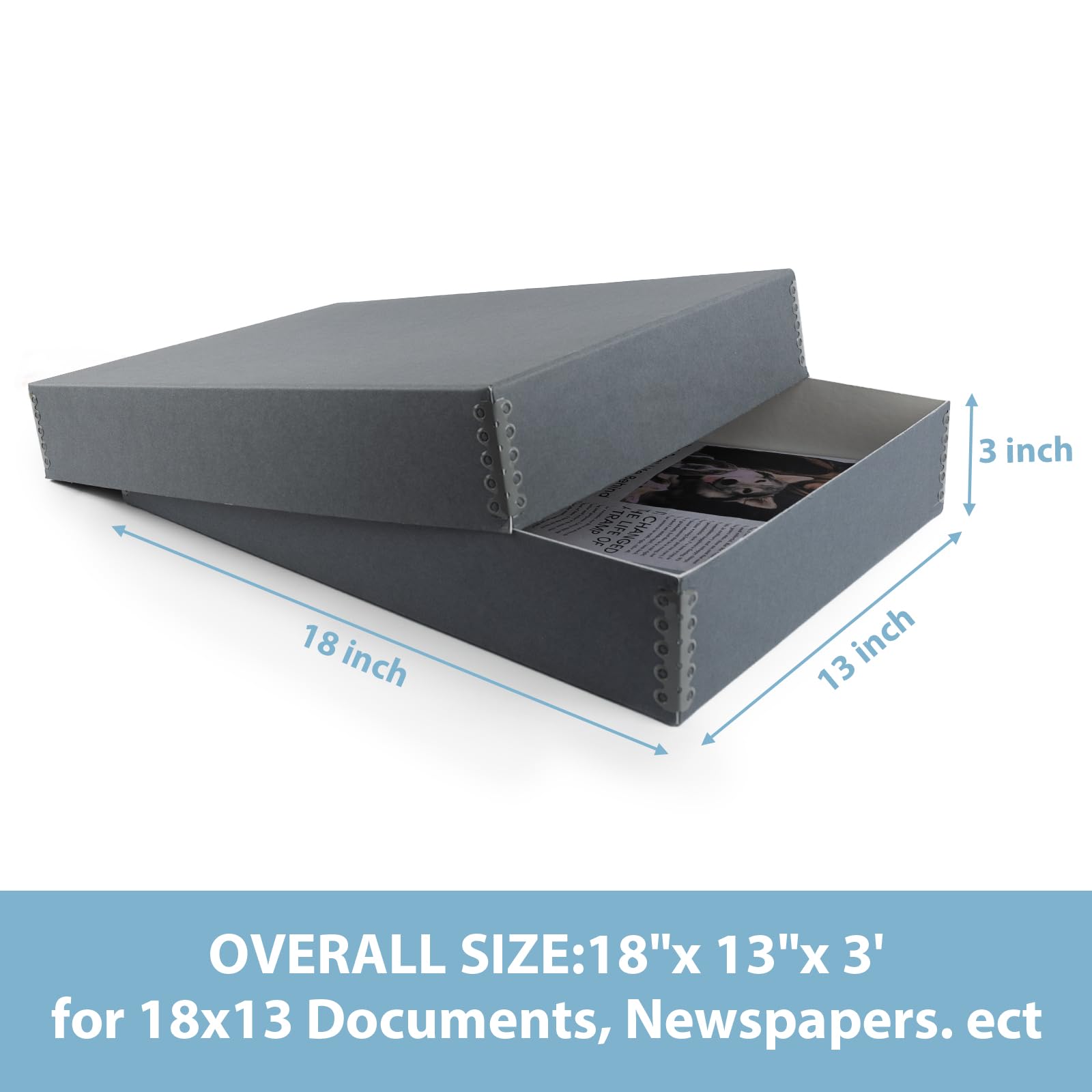 Overall Size: 18'' x 13'' x 3'' (L x W x H). When storing multiple newspapers in one box, layer them with archival-quality tissue paper or place each newspaper in a newspaper sleeve or folder