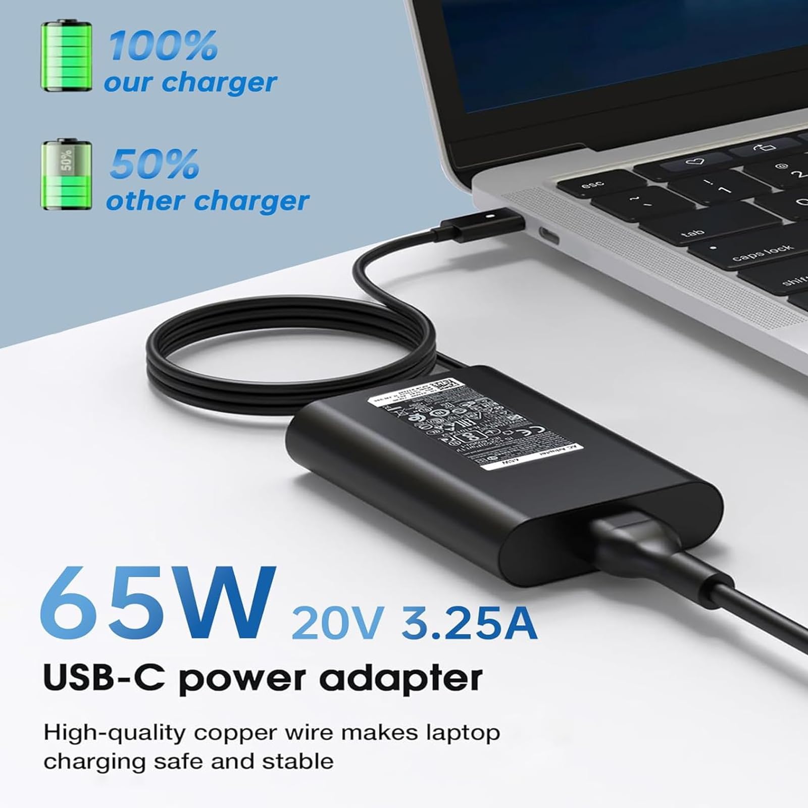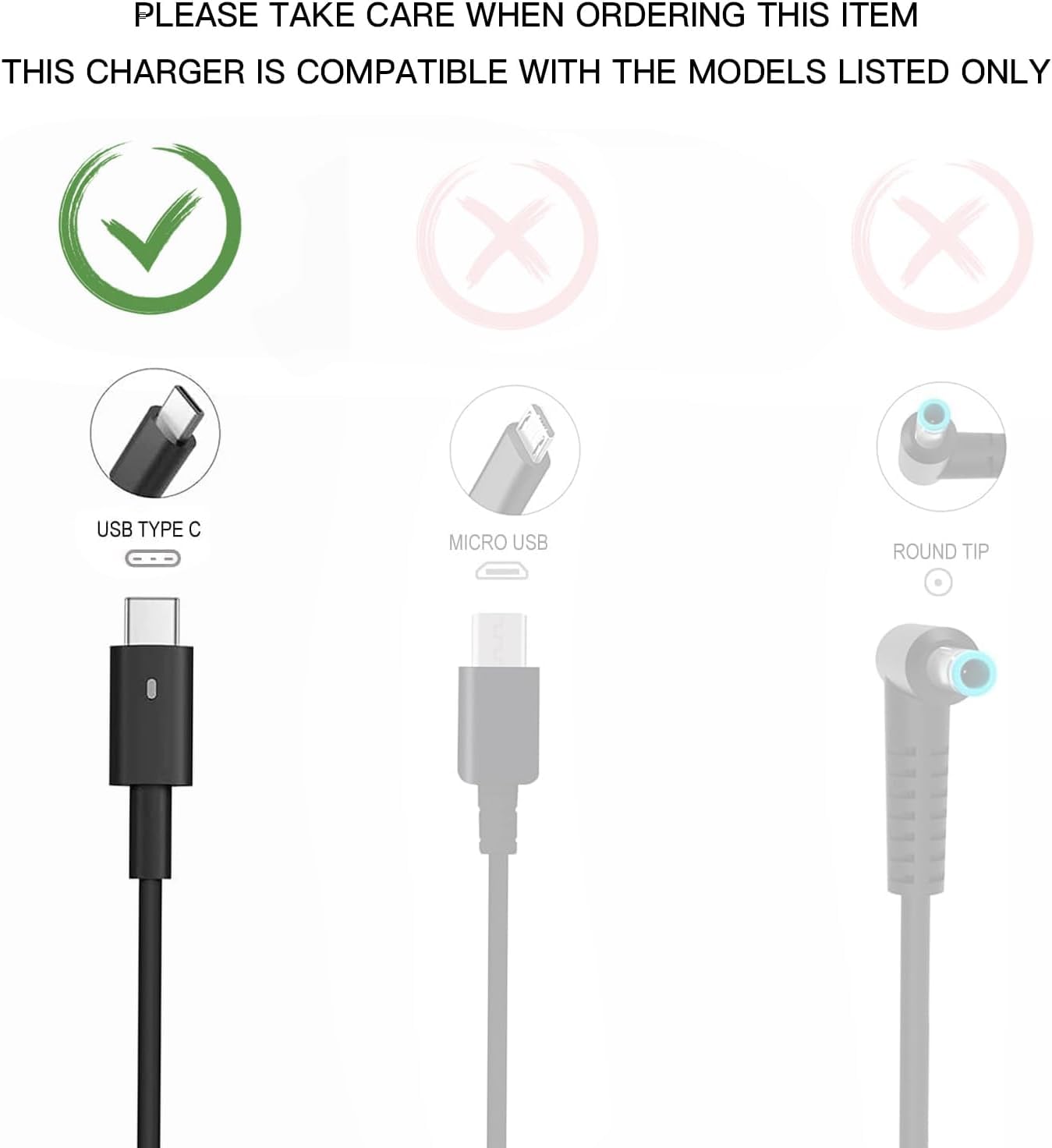 Input 100V 240V 50 60Hz 2.6A Max. Ouptut 5V 3A, 9V 3A, 12V 3A, 15V 3A, 20V 3.25A. Power 15w 27w 30W 45W 65W Tip size usb c Type c. Potencia 65 W compatible con 29 W, 30 W, 45 W, 61 W