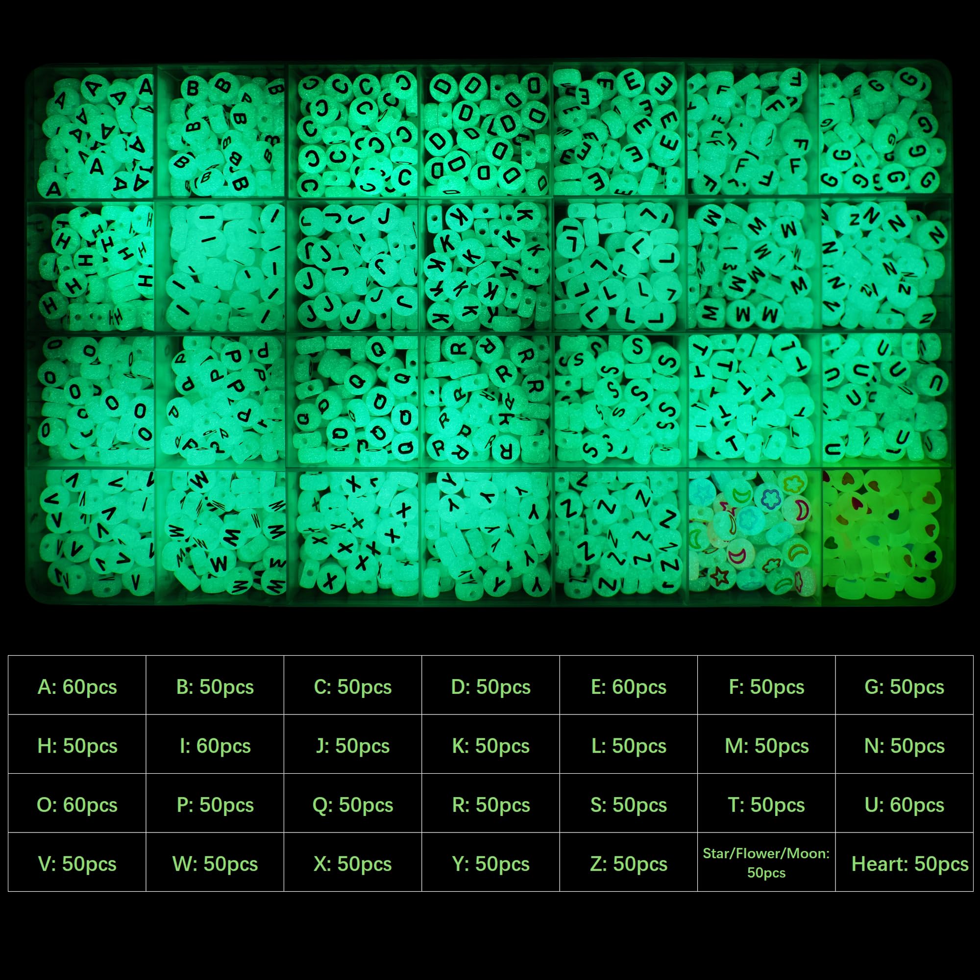 HIGH QUALITY: These Acrylic letter beads are made of high quality acrylic with clean and stain-free holes, smooth surface. They can glow in the dark after being exposed to sunlight or UV light.